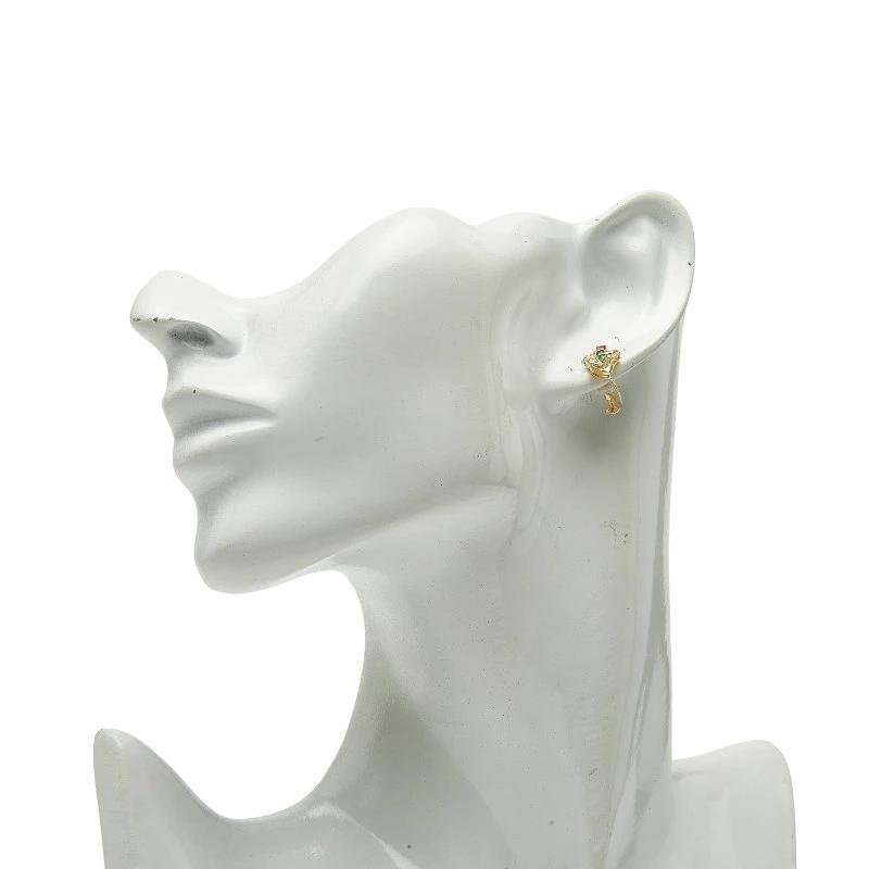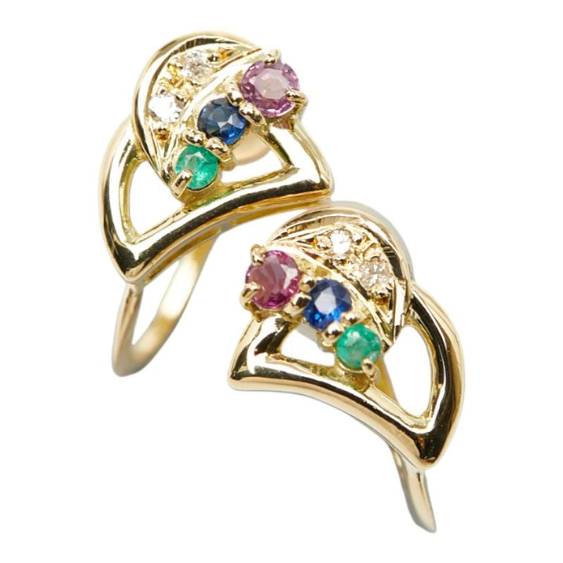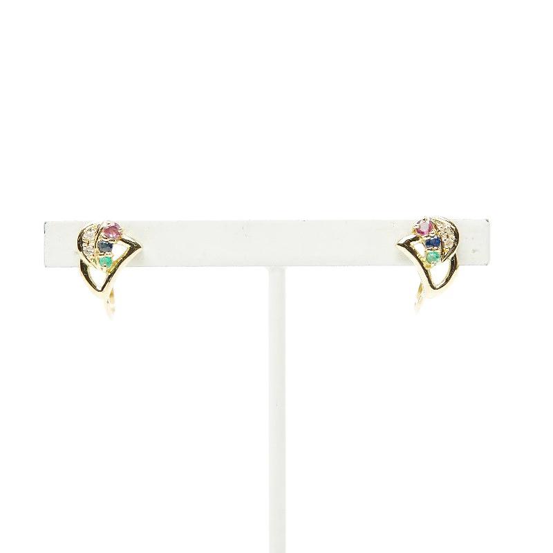 - K18YG イエローゴールド ダイヤ0.04ct ピンクサファイア サファイア エメラルド イヤリング レディース 【中古】