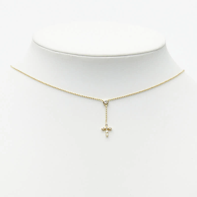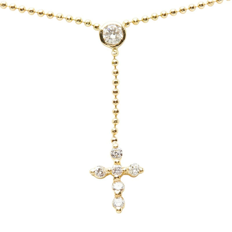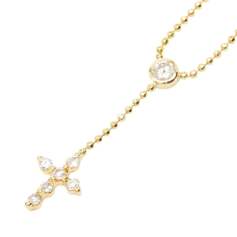 - K18YG イエローゴールド ダイヤ0.10ct ダイヤ0.10ct クロスモチーフ ペンダント ネックレス レディース 【中古】
