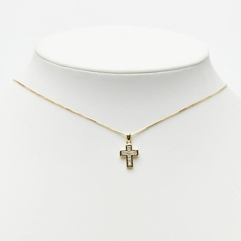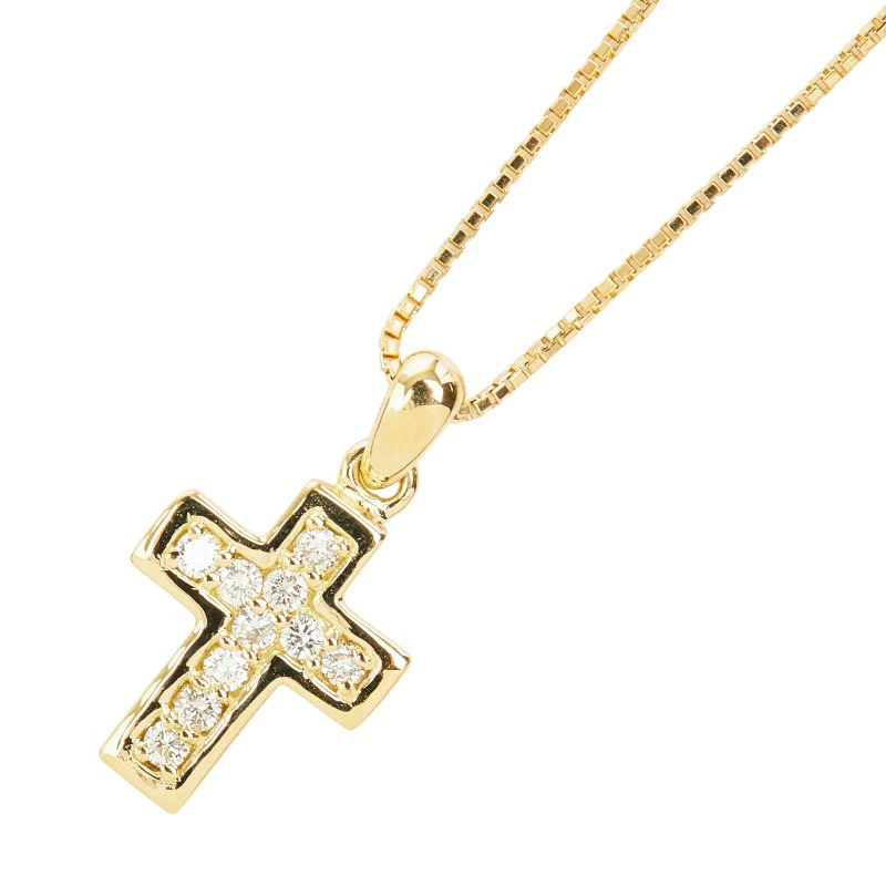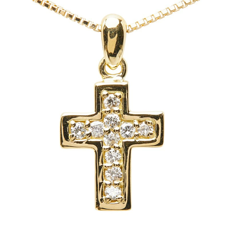 - K18YG イエローゴールド ダイヤ0.13ct クロスモチーフ ペンダント ネックレス レディース 【中古】