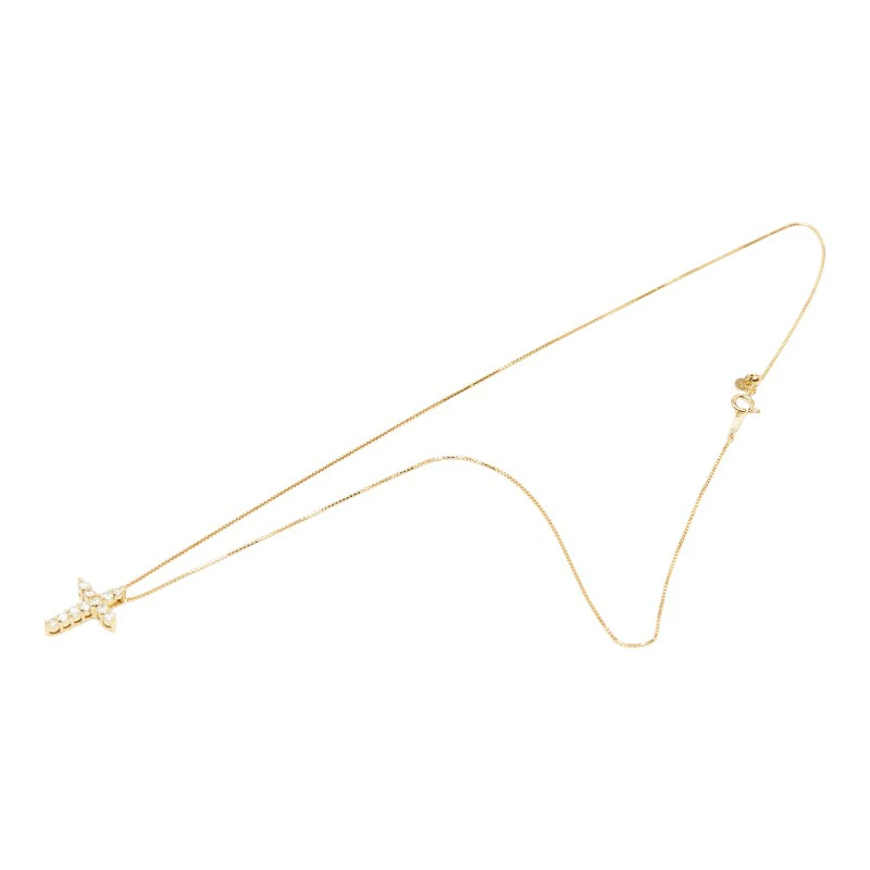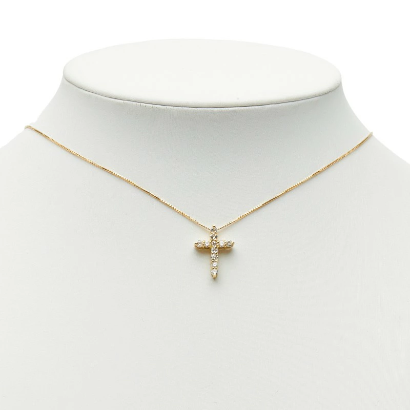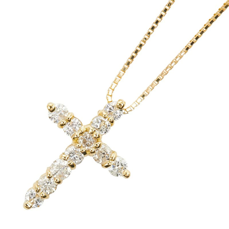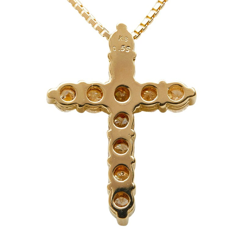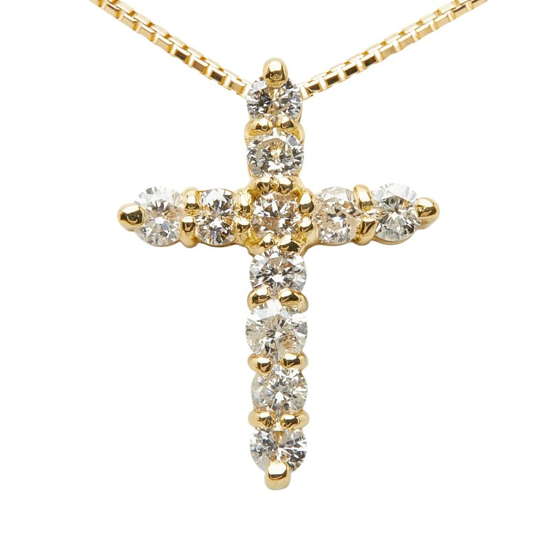 - K18YG イエローゴールド ダイヤ0.55ct クロスモチーフ ペンダント ネックレス レディース 【中古】
