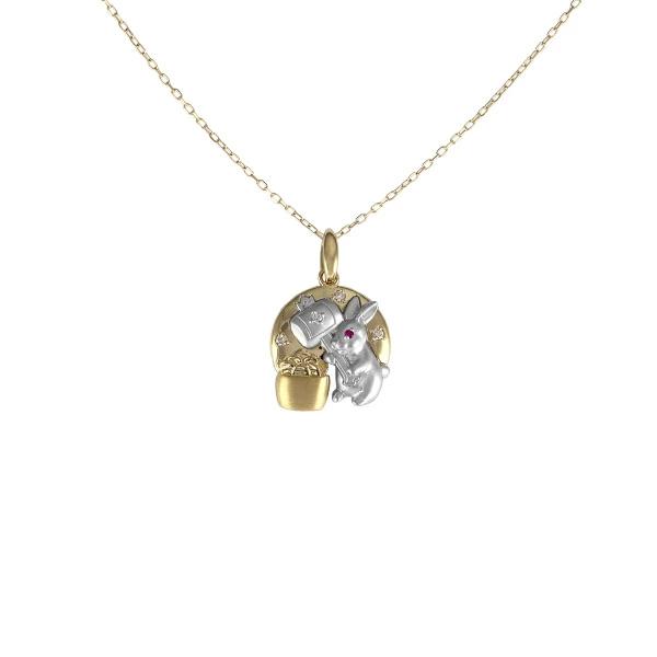 K18YG Yellow Gold PT950 Ruby Diamond OTHER Necklace Rabbit