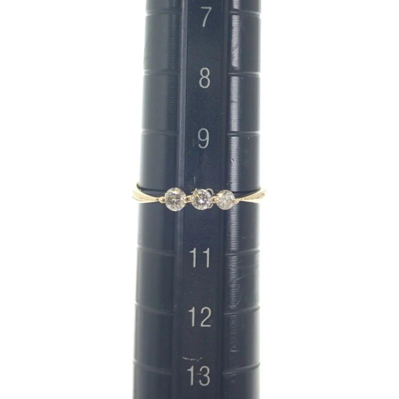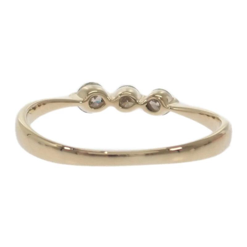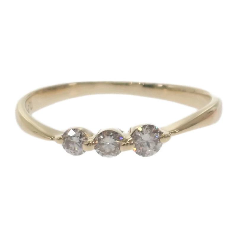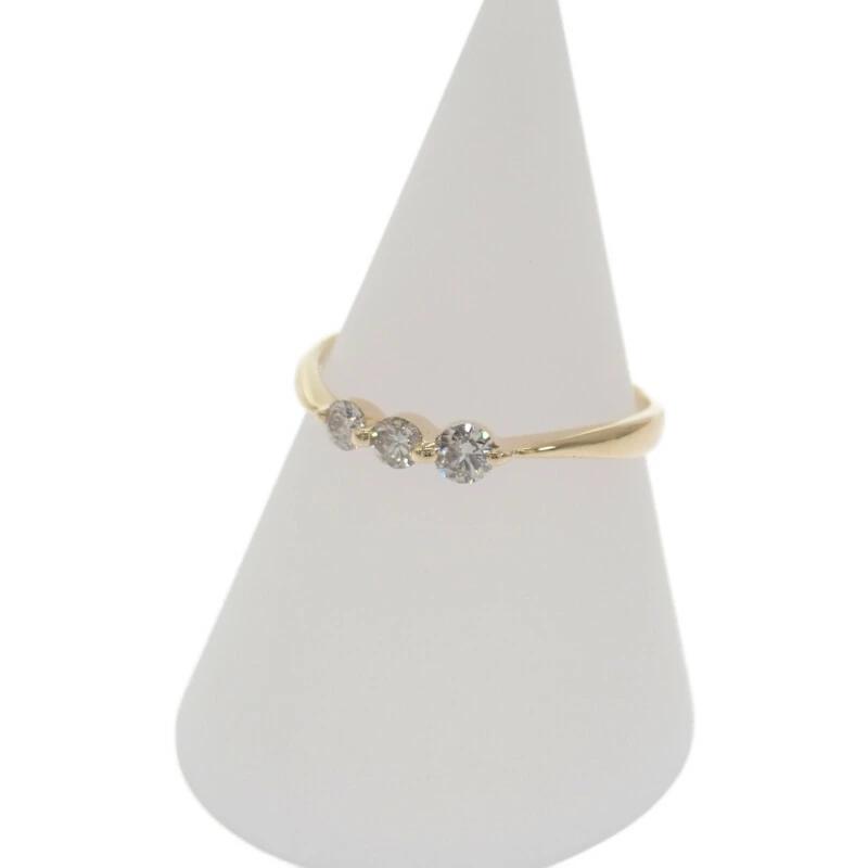 肌馴染みが良い18金イエローゴールドの華奢なラインと、絶妙にサイズの異なる3連のダイヤモンドが指先にニュアンスのある華やかさをプラスします。