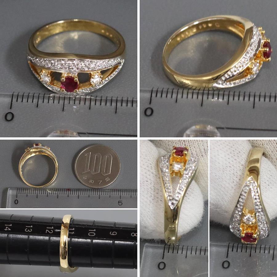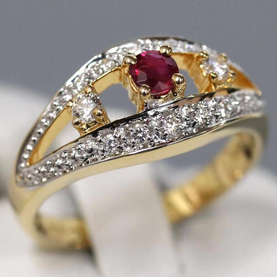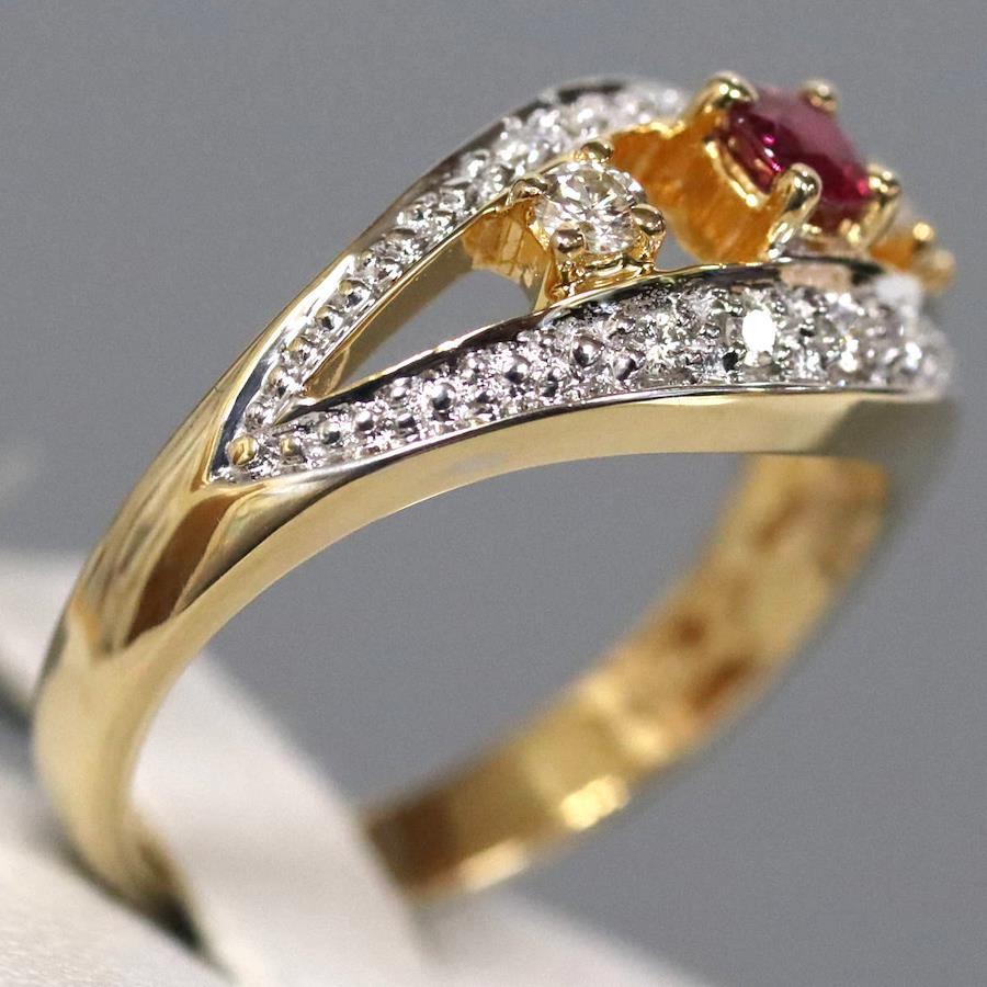 K18YG/WGルビーダイヤモンドリングの中古品です。ルビーの表面にわずかに天然の欠けがあります。ルビーはやや紫がかった赤色です。ダイヤモンドは全体的にインクルージョンが少ないです。地金には小傷があります。+---+---+---+---+---+。{状態}AB{素材}K18YG/WG,ルビー,ダイヤモンド{サイズ}当店計測約#11{リング幅}約2-9mm。{その他}R0.20ct,D0.16ct,4.4g。{付属品}なし(サービス箱をお付けします){お問合せ商品番号}25096029+---+---+---+---+---+。