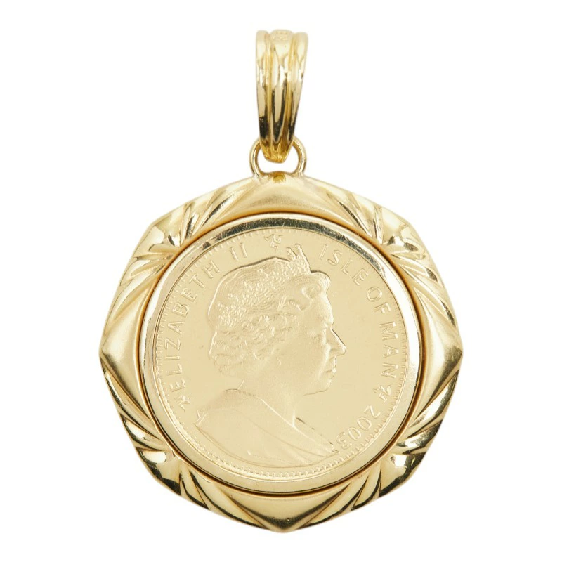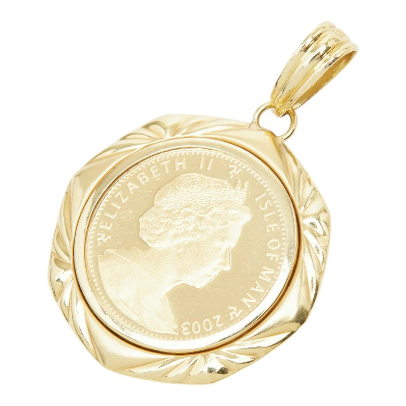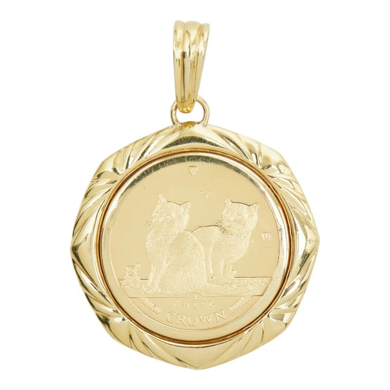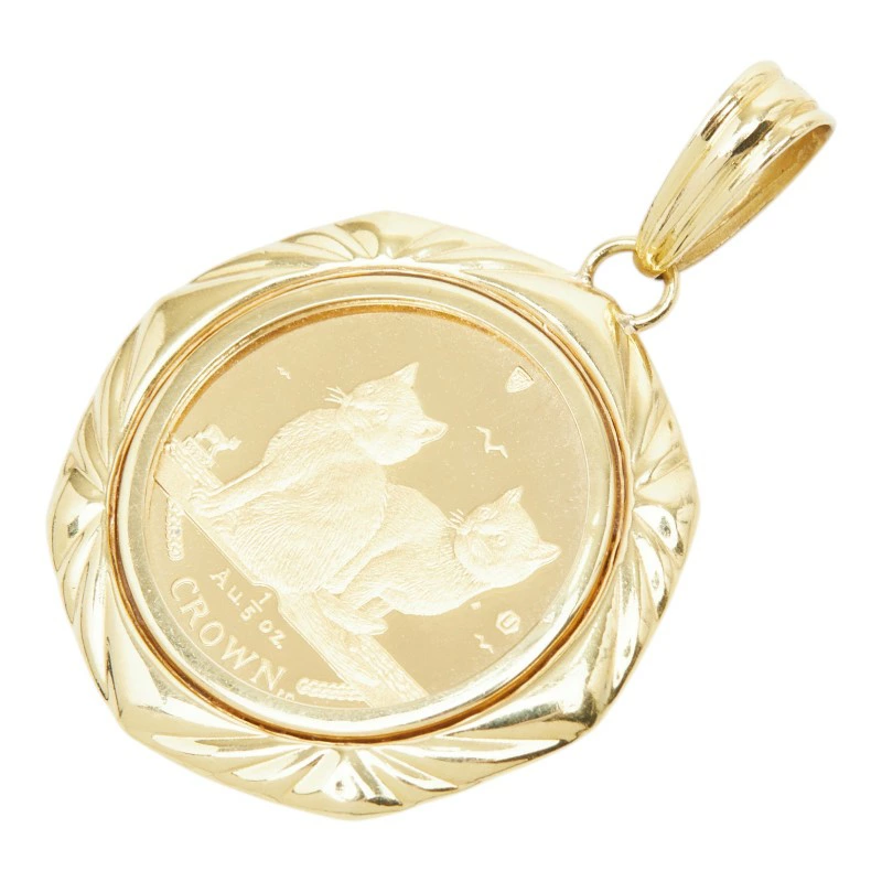 - K24IG インゴット K18YG イエローゴールド マン島キャット金貨 2匹のバリニーズ子猫 ペンダントトップ ネックレス レディース 【中古】