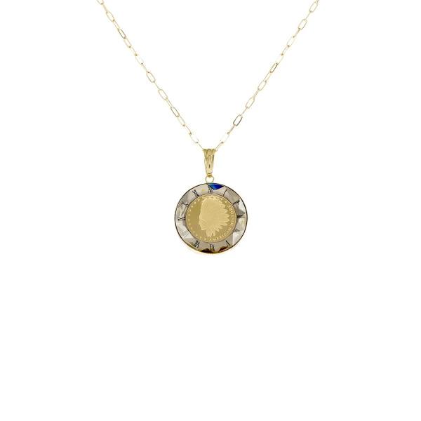 K24YG Yellow Gold K18YG Coin Necklace Indian Eagle 1/25 oz