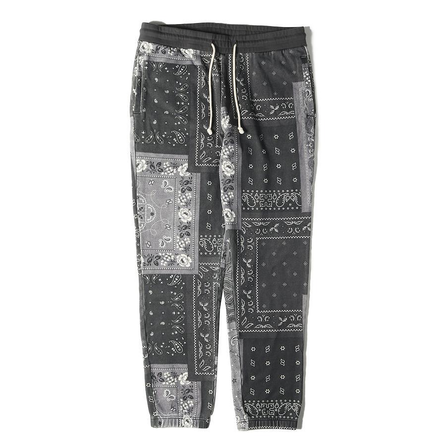 | 商品説明 | バンダナ柄パッチワークの転写プリントをあしらったテーパードスウェットパンツです。ボディにはウォッシュ加工が施されております。 |