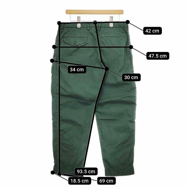 実寸サイズ | 総丈:約93.5cm ウエスト:約42cm 股上:約30cm 股下:約69cm ヒップ:約47.5cm ワタリ幅:約34cm 裾幅:約18.5cm ※記載以外のサイズが合わないことを理由とした返品はできませんので、 記載部分以外で実寸サイズの気になる箇所があれば必ず購入前にご質問ください。 |