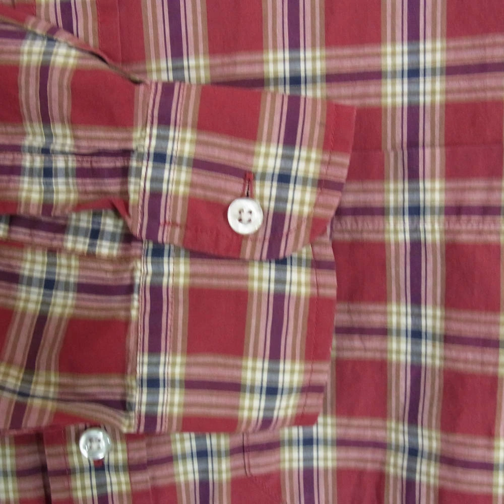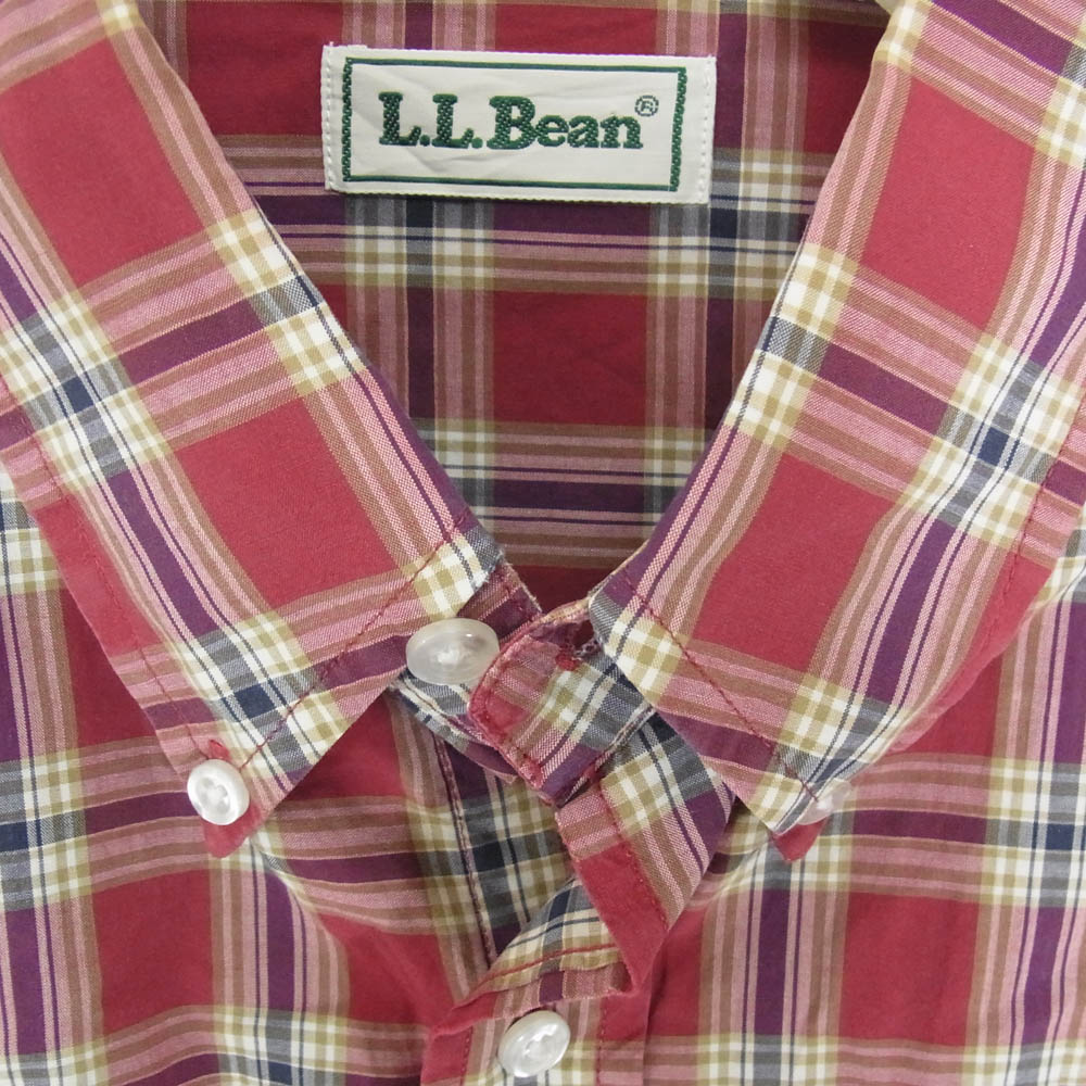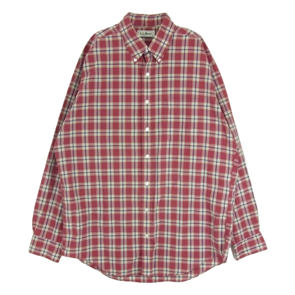 Pre-owned L.L.Bean 90s Hong Kong-made button-down long-sleeve plaid shirt, red, size L, men's.