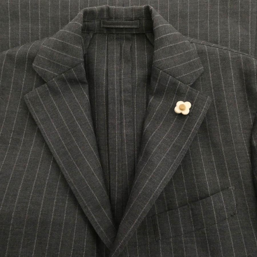 | 商品名 | JI801AQ ブートニエール付き ウール ストライプ 3Bテーラード ジャケット スラックス パンツ スーツ セットアップ |