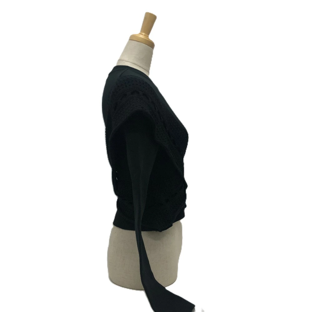 LE CIEL BLEU 25S61416 Lace-trimmed Long Sleeve Knit Sweater, Cotton, Women's, Black, Pre-owned