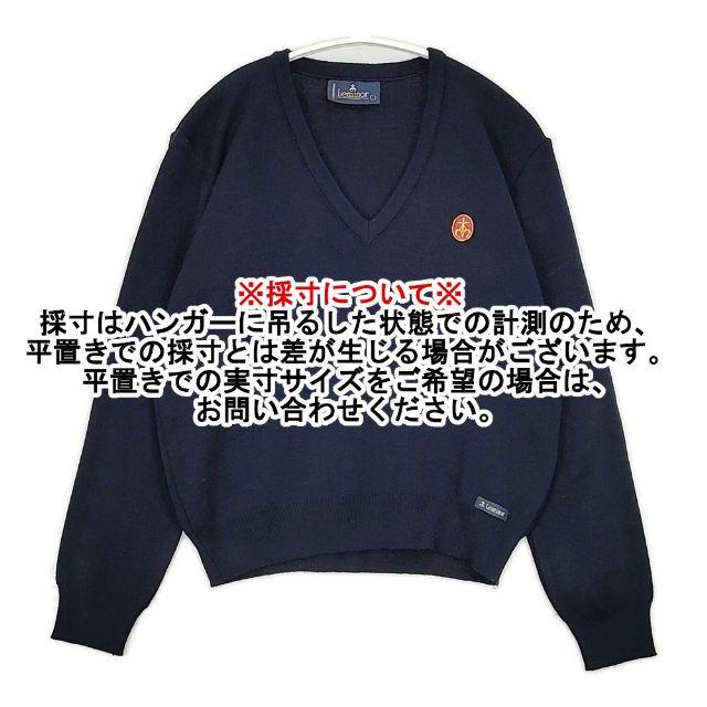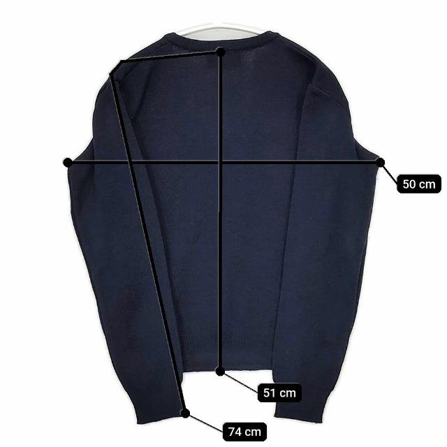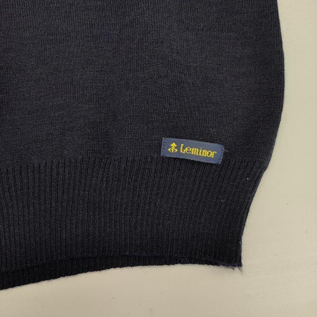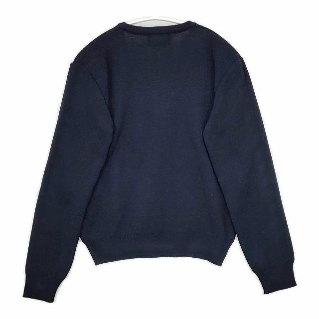 Pre-owned Le Minor French-made wool and acrylic V-neck sweater with patch, navy, for women. Product number: 5-1020T.