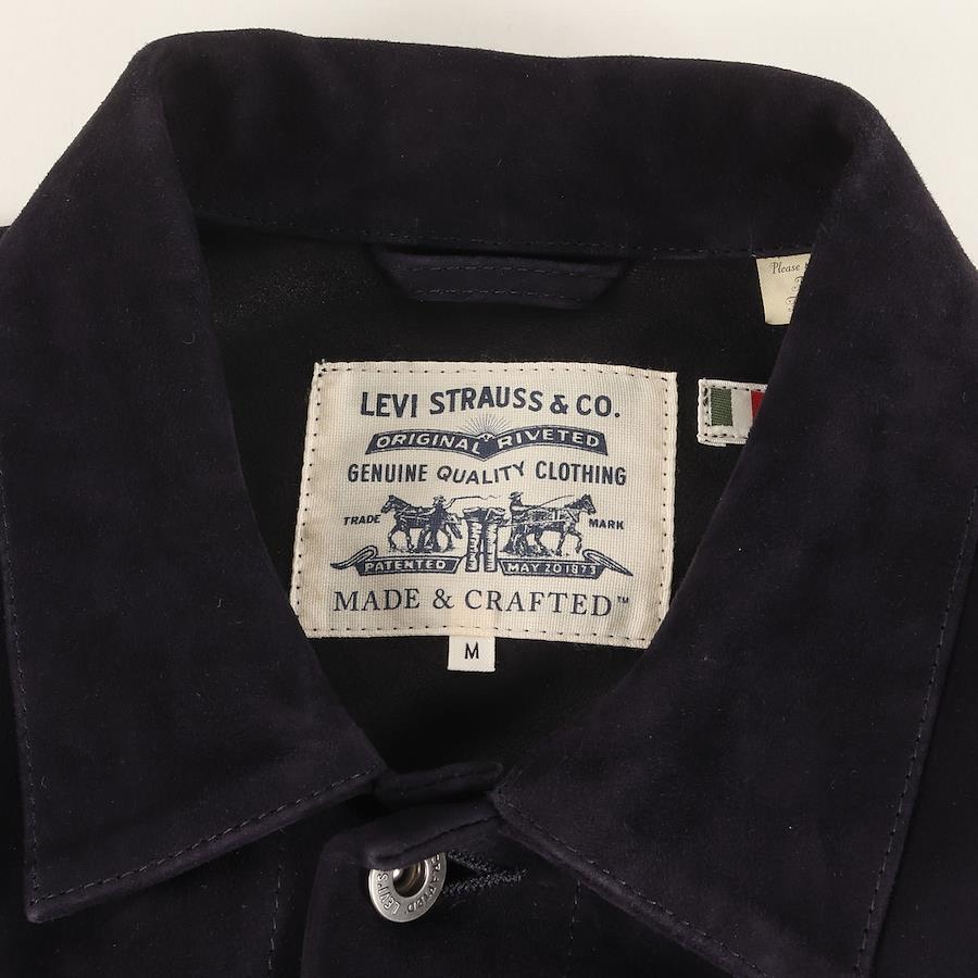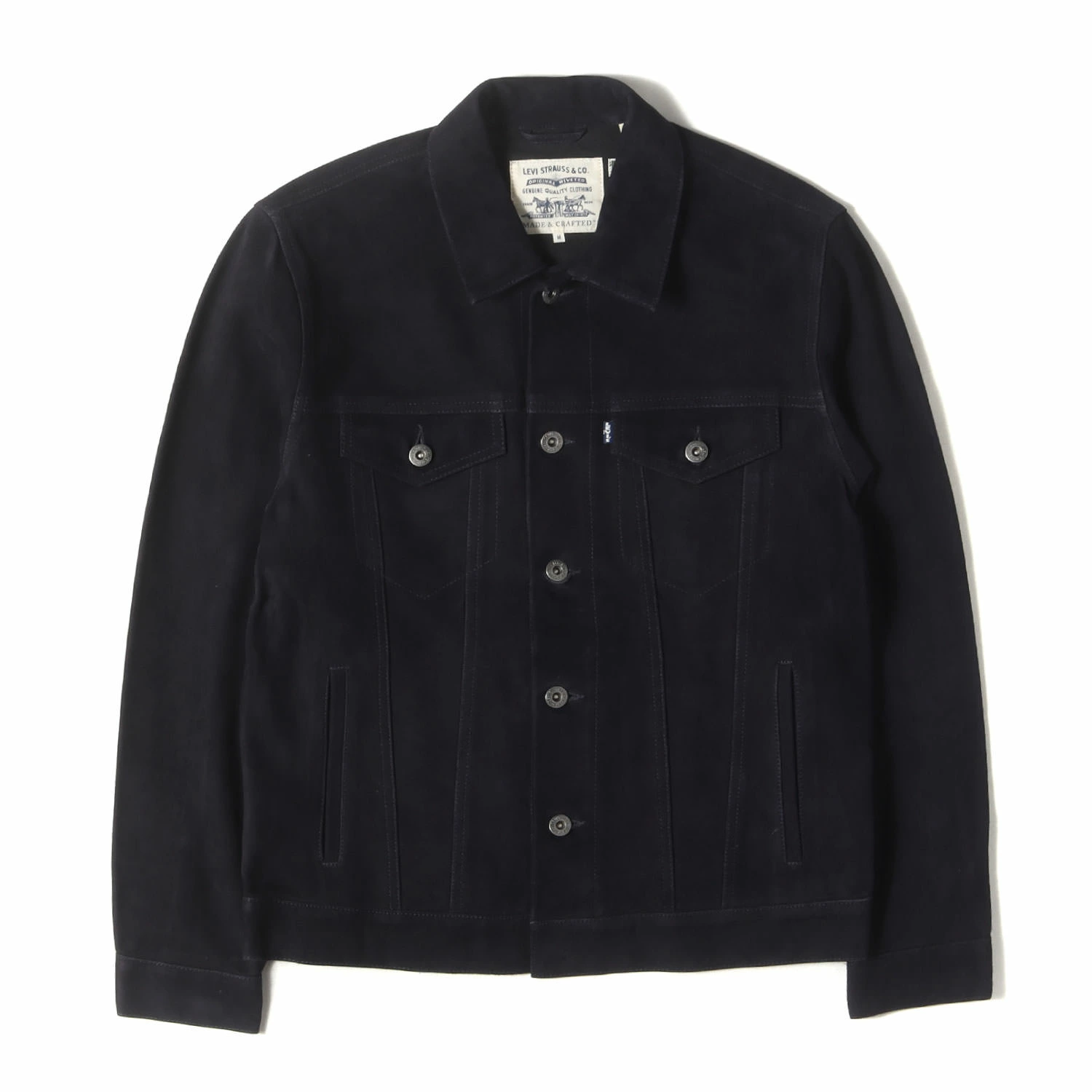 Levis Navy Jacket, Size L | Levis Made & Crafted | Big E 3rd Goat Suede Trucker Jacket | Made in Italy | Men's Outerwear Blouson Jacket [K4643]