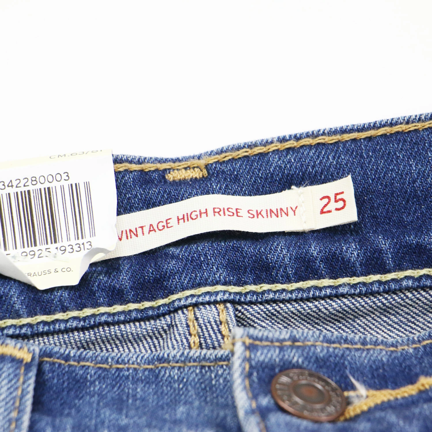 | サイズ | 25(S)ウエスト約68cm(平置き)×股上約24cm×股下約80.5cm×ワタリ幅約23.5cm(もも幅)×裾幅約13.5cm |