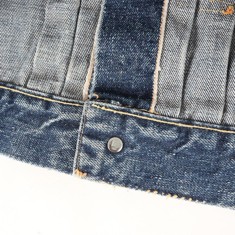 | 商品説明 | ・“507XX 2nd 後期”モデル ・革パッチ最終~紙パッチギャラ入り初期頃(推定) ・ボタン裏刻印“17” ・両面BigE赤タブ(均等V) ・ポケットフラップ裏 ライトオンス ・裾裏上 チェーンステッチ ・裾裏下 シングルステッチ ・袖元リベット 銅メッキ鉄製 ・ウエストアジャスター ボックスステッチ ・ポケット淵のカンヌキ止めオレンジ糸 ・イエロー&オレンジステッチ |