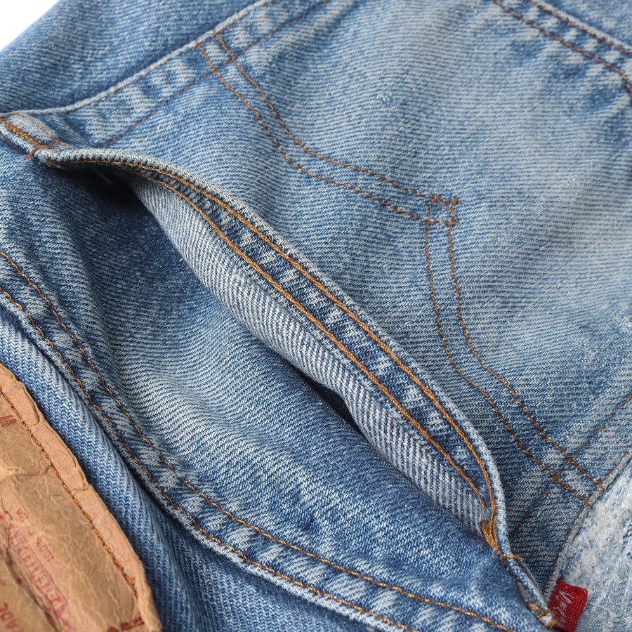 | 商品説明 | ・スモールe赤タブ ・赤耳付き ・紙パッチ ・ケアタグ(収縮率10%) ・ボタン裏刻印555(バレンシア工場) ・バックポケット裏 チェーンステッチ ・裾 シングルステッチ |