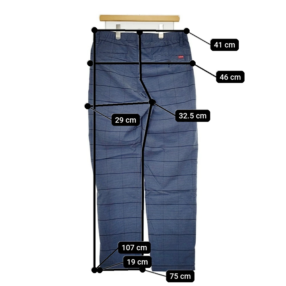 | 実寸サイズ | 総丈:約107cm ウエスト:約41cm ウエスト最長:約46cm 股上:約32.5cm 股下:約75cm ヒップ:約46cm ワタリ幅:約29cm 裾幅:約19cm ※採寸画像がある商品はハンガーに吊るした状態での計測のため、平置きでの採寸とは差が生じる場合がございます。平置きでの実寸サイズをご希望の場合は、ご購入前に必ずご質問ください。 ※記載以外のサイズが合わないことを理由とした返品はできませんので、 記載部分以外で実寸サイズの気になる箇所があれば必ず購入前にご質問ください。 |
