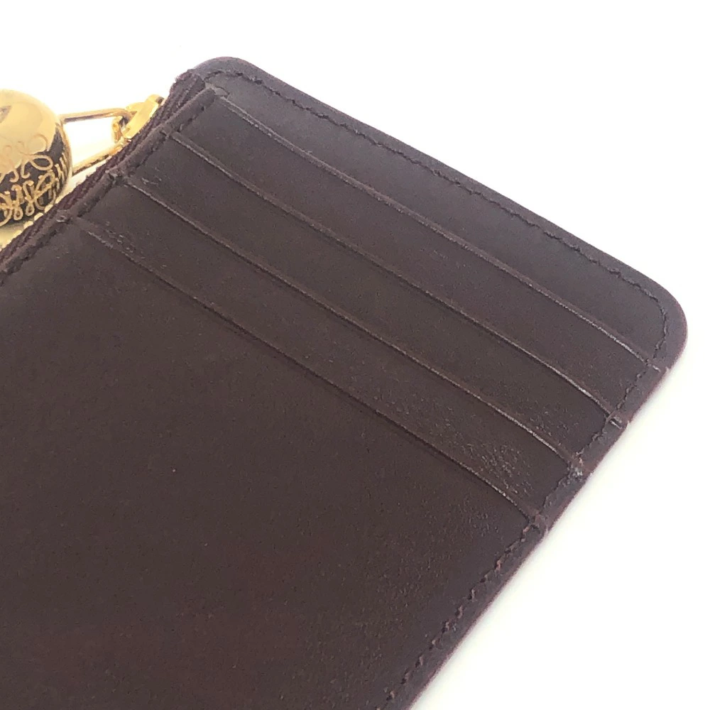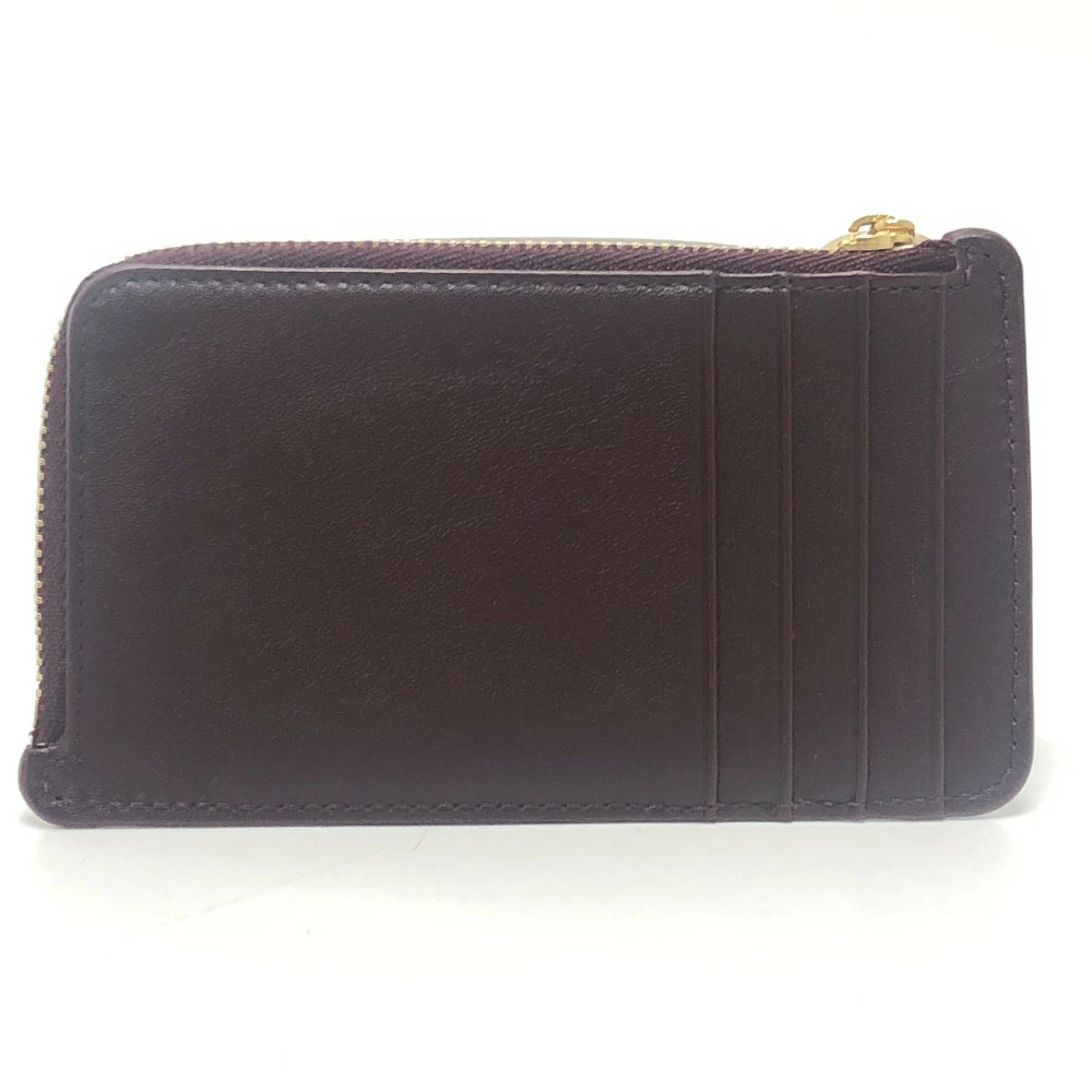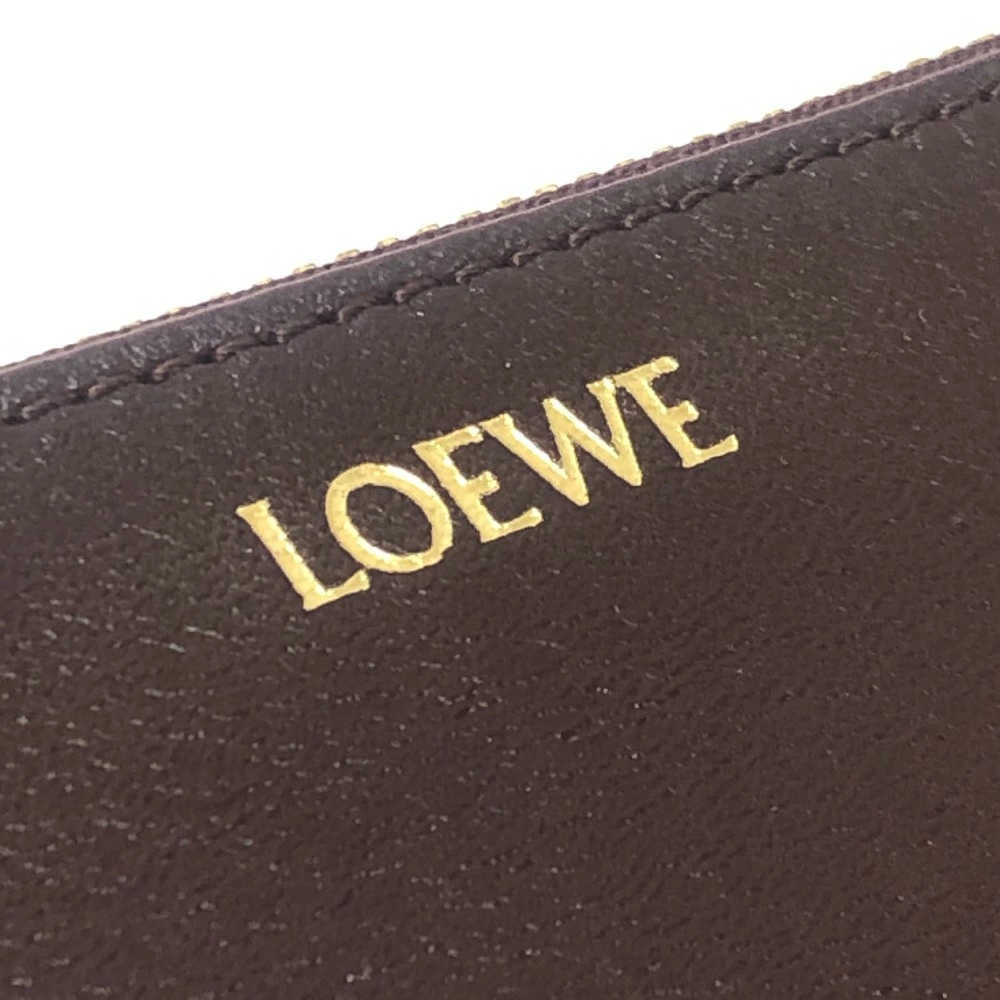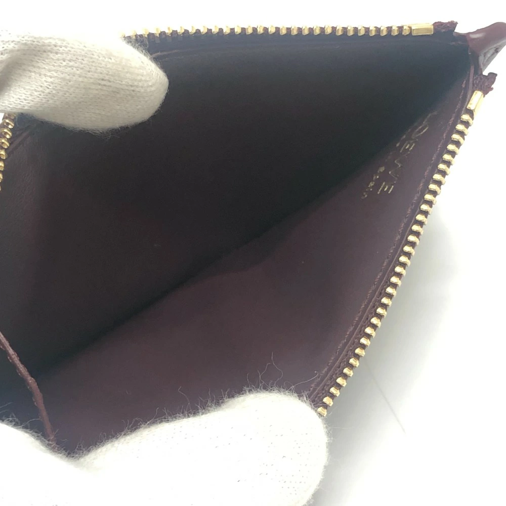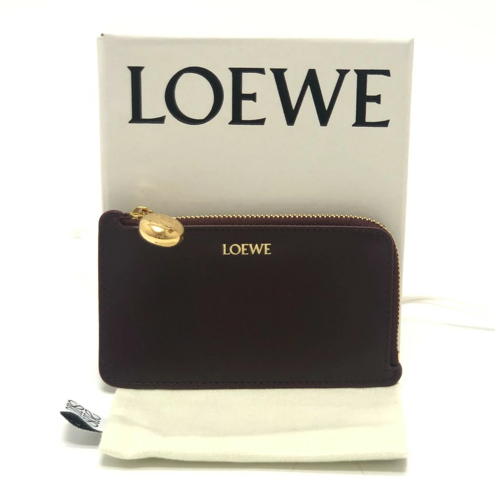 Pre-owned LOEWE Pebble Logo Card Case, Fragment Case, L-shaped Zipper Coin Case, Leather, Wine Red, Women's