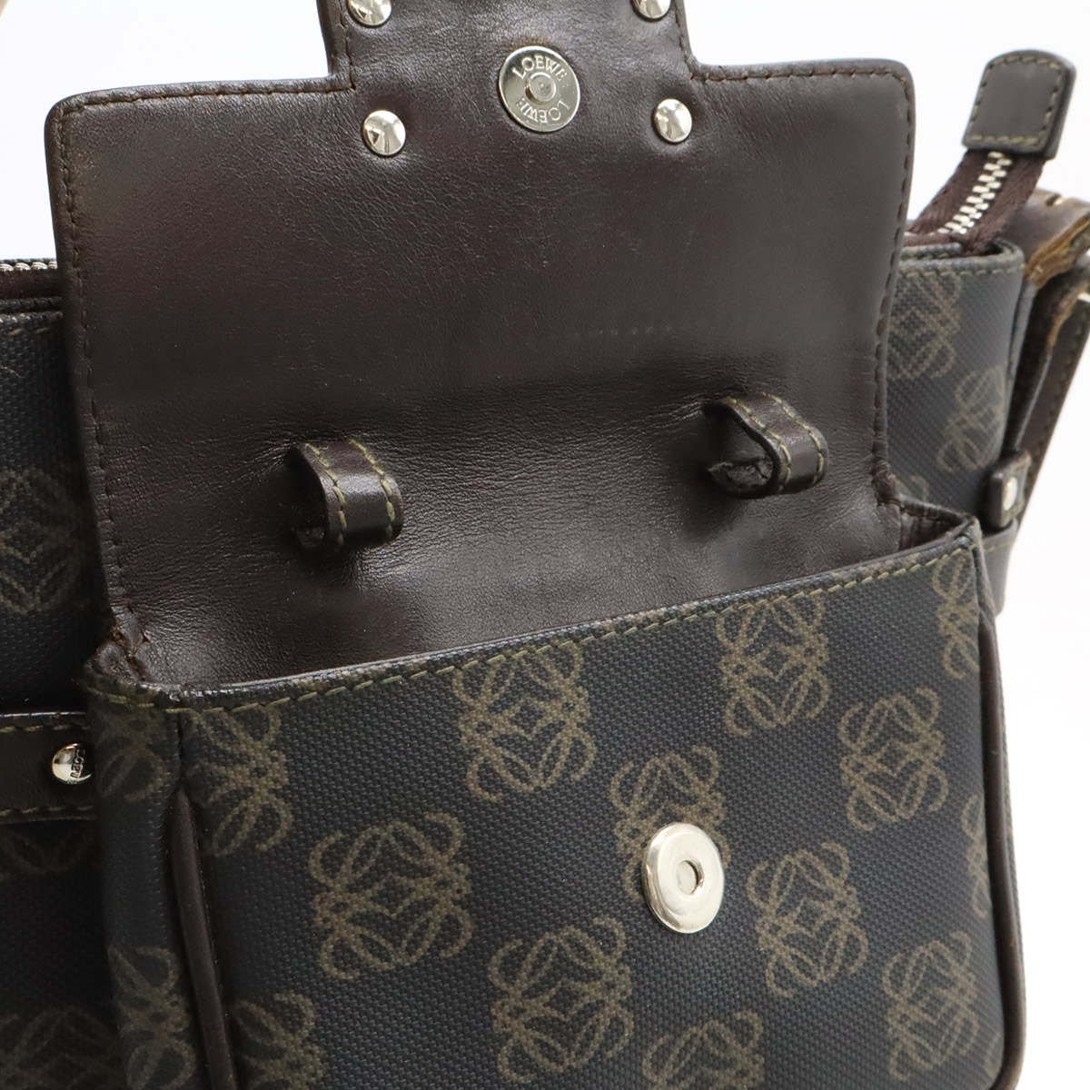 【コンディション】[外側]角、フチスレ[内側]スレ、汚れ、色褪せ[ショルダー]スレ、付根コバ剥がれ、表面薄っすらとヒビ[金具]スレ