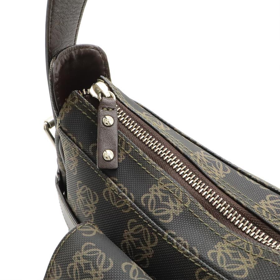 【商品説明】[サイズ]W24cm H12.5cm D8cm ショルダー最長約63cm(両側3段階調節可)[材質]コーティングキャンバス(PVC)/レザー[カラー]ブラック/ダークブラウン[仕様]内側ポケット1[付属品]ポーチ[重さ]約480g