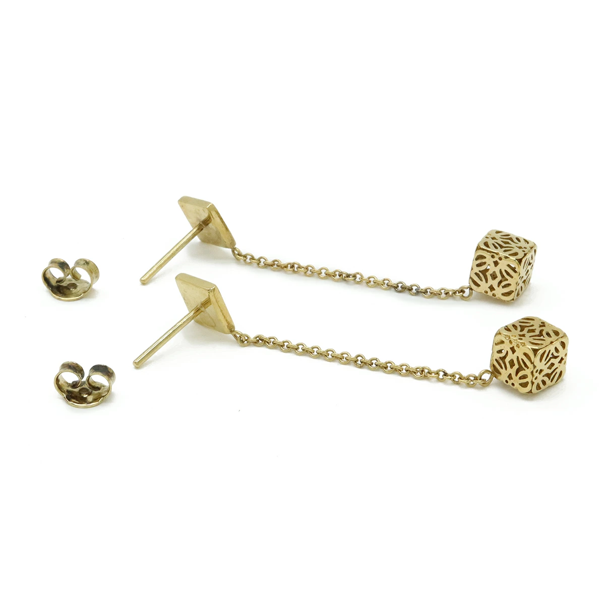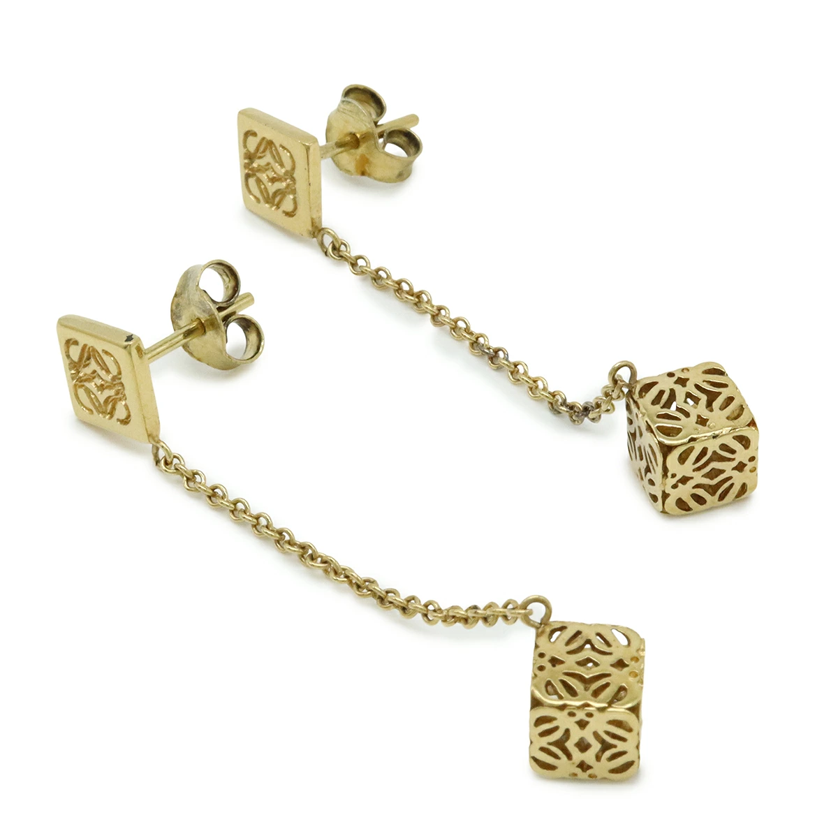 動くたびに揺れるロゴモチーフがとても可愛らしいチェーンピアスでございます。