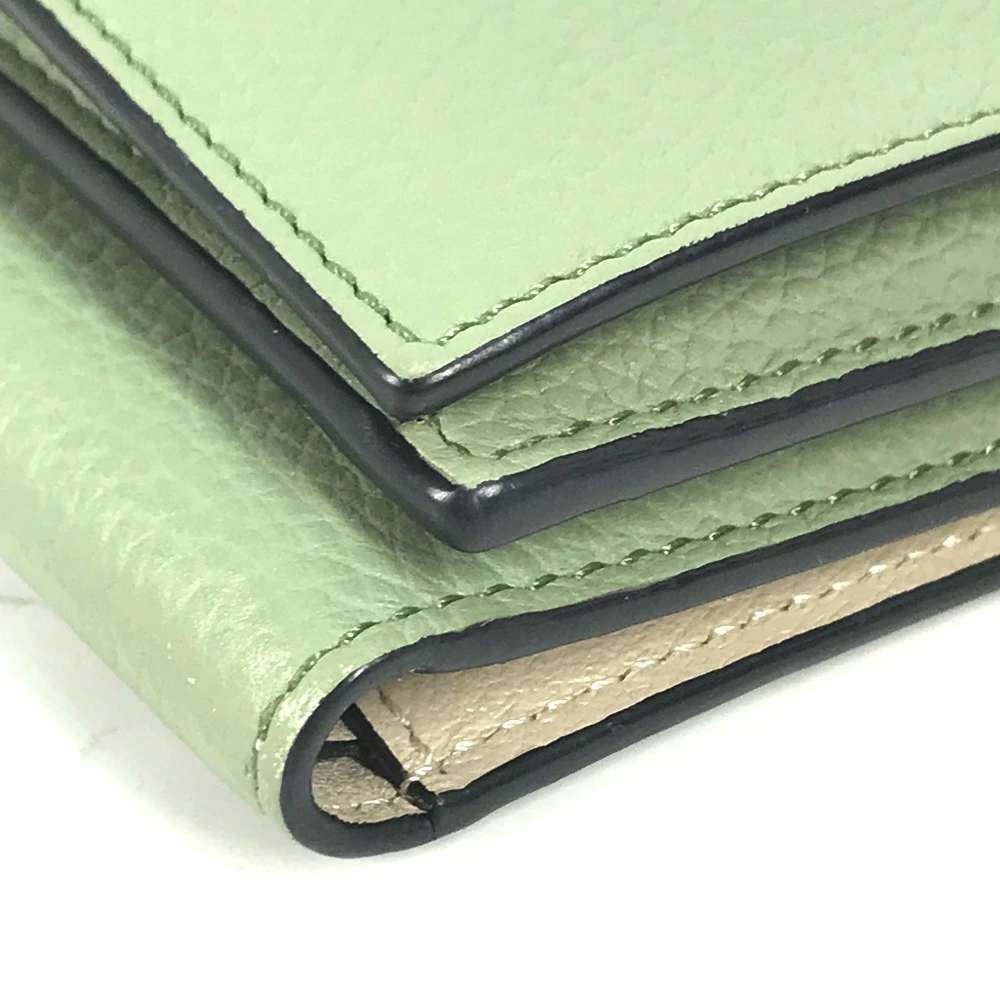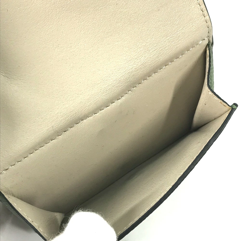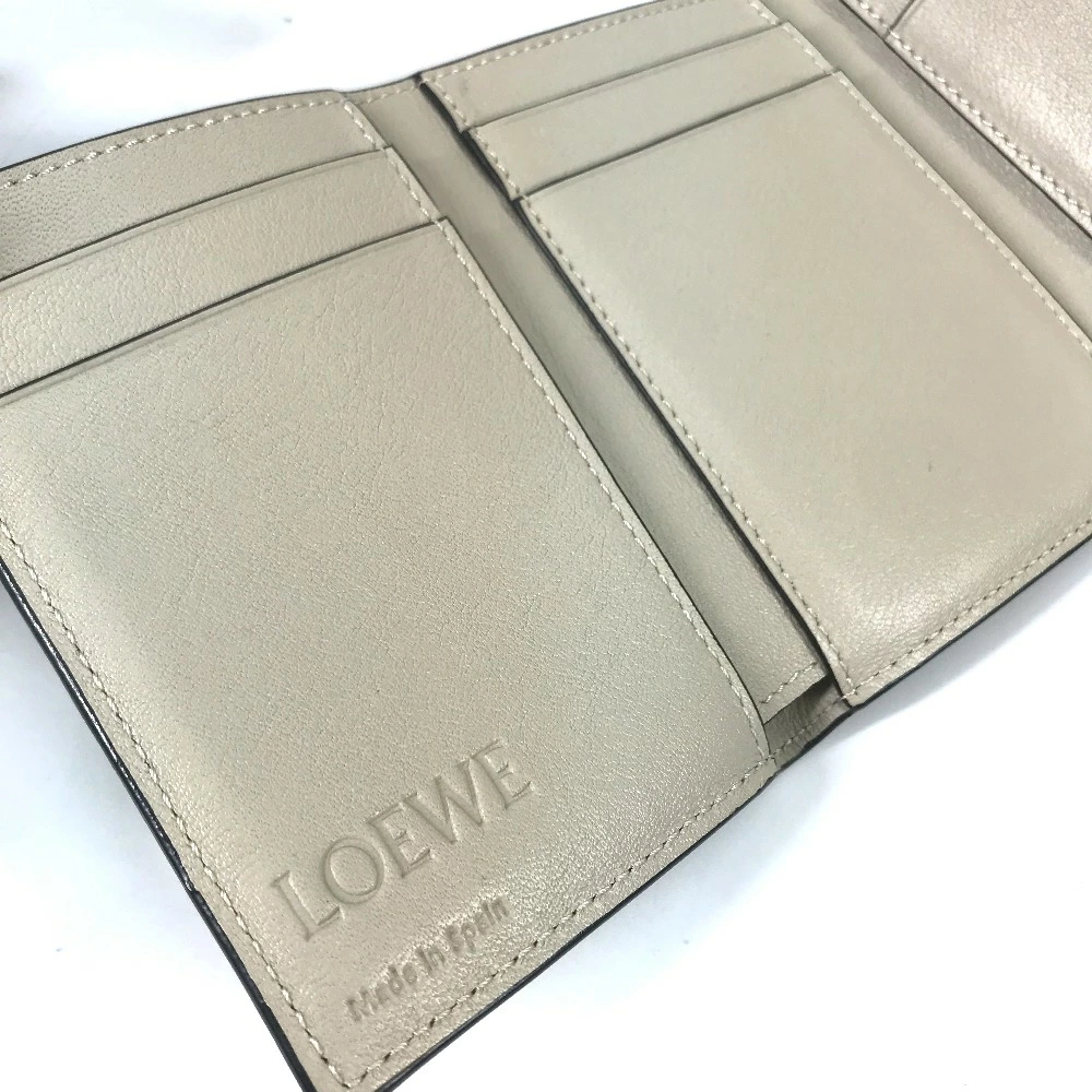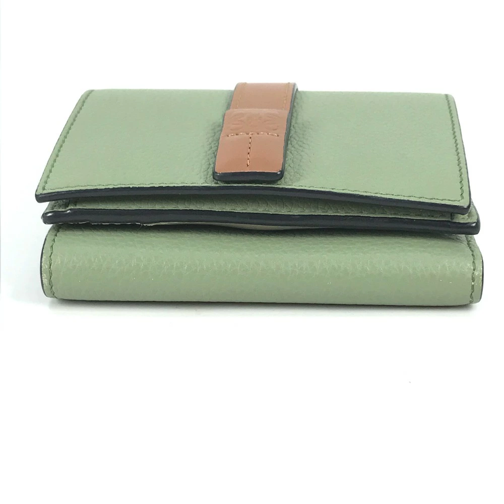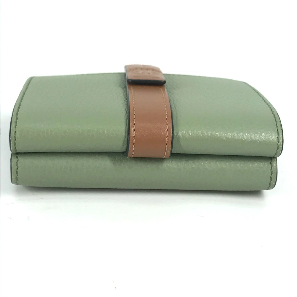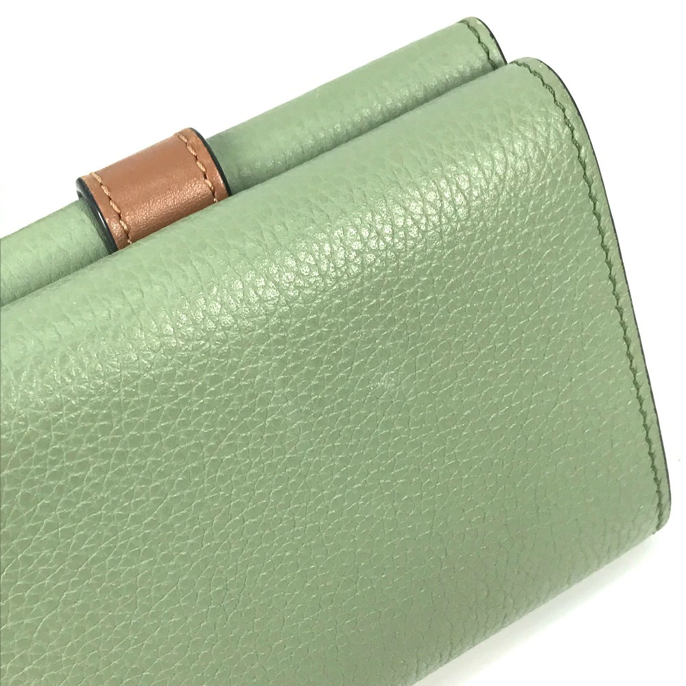 Pre-owned LOEWE Anagram Small Vertical Wallet, compact tri-fold leather wallet, green, for women.