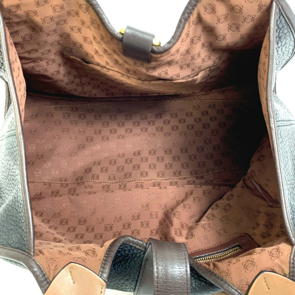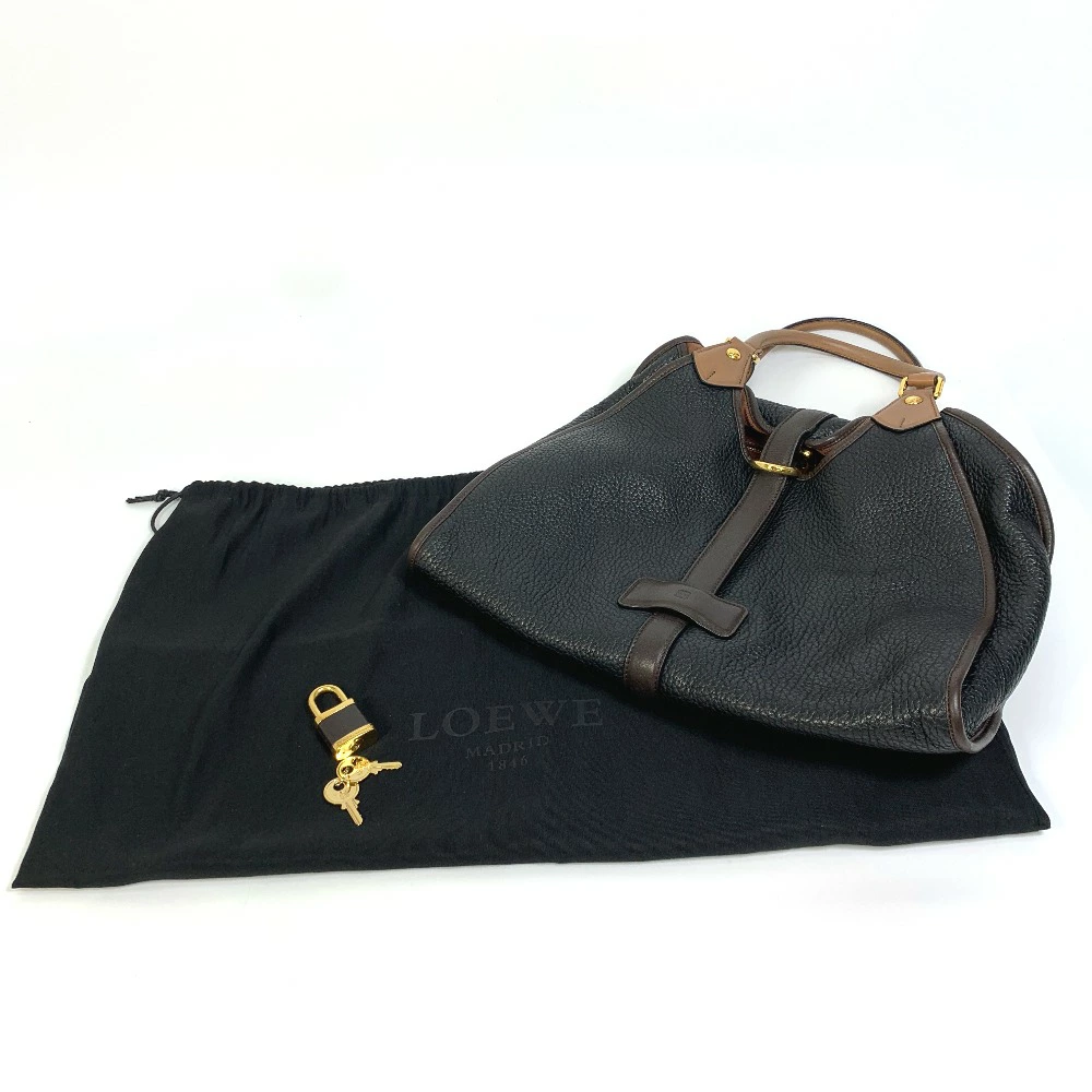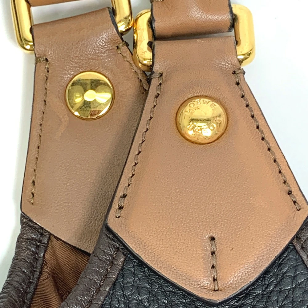 Pre-owned LOEWE Anagram Two-Tone Leather Handbag in Black and Brown.