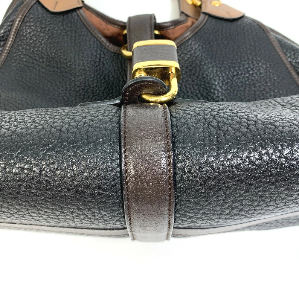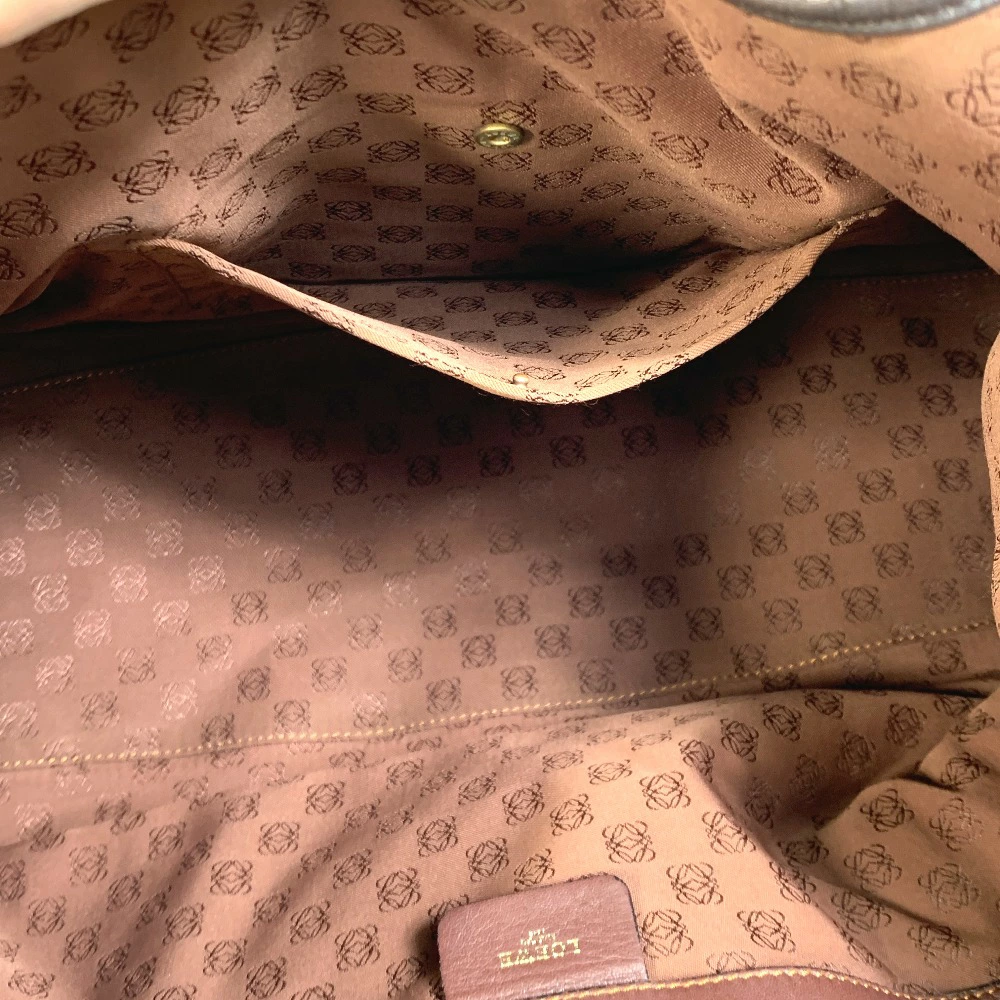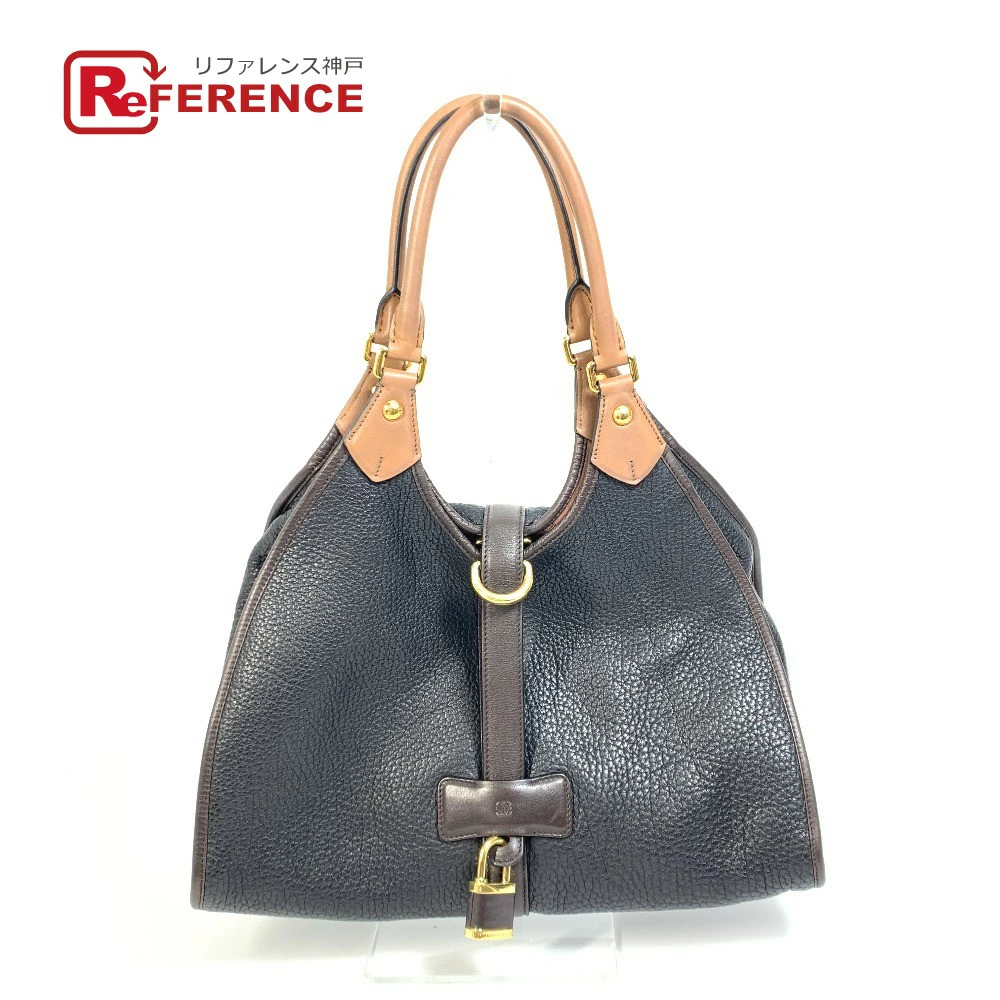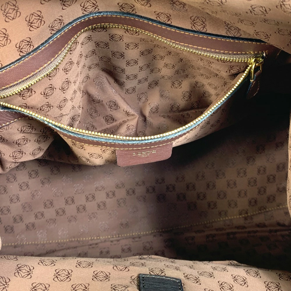Pre-owned LOEWE Anagram Two-Tone Leather Handbag in Black and Brown.