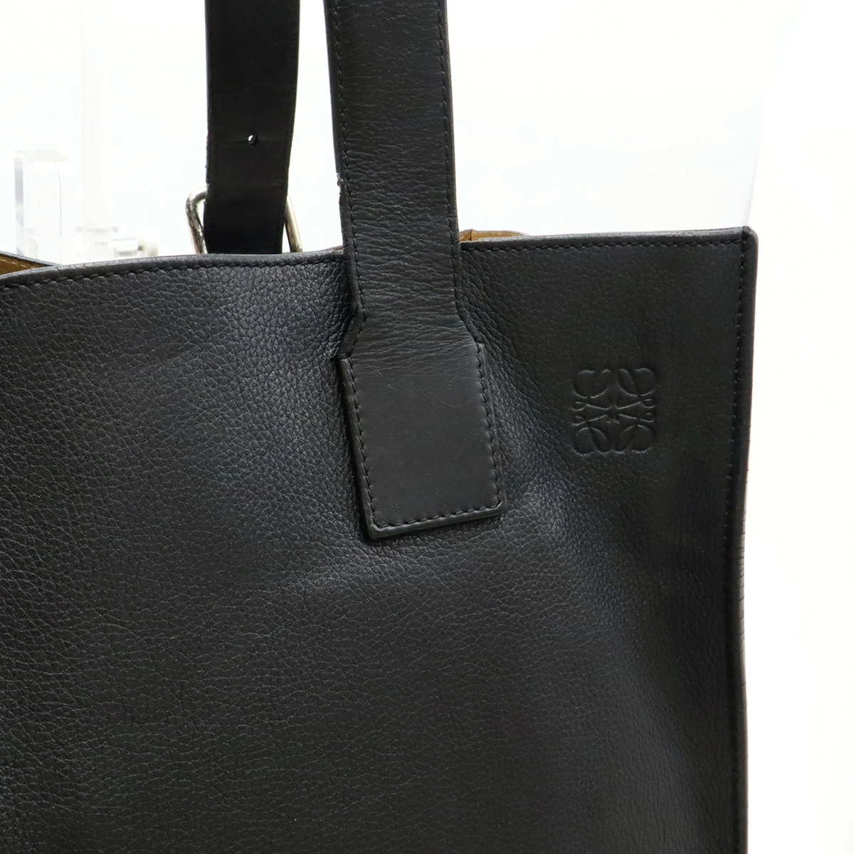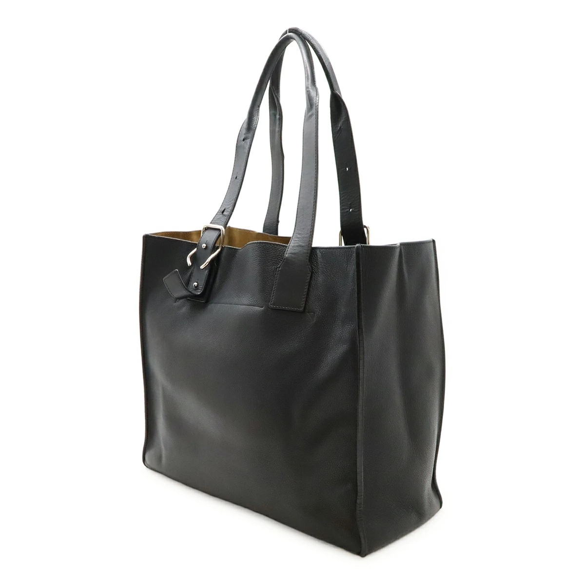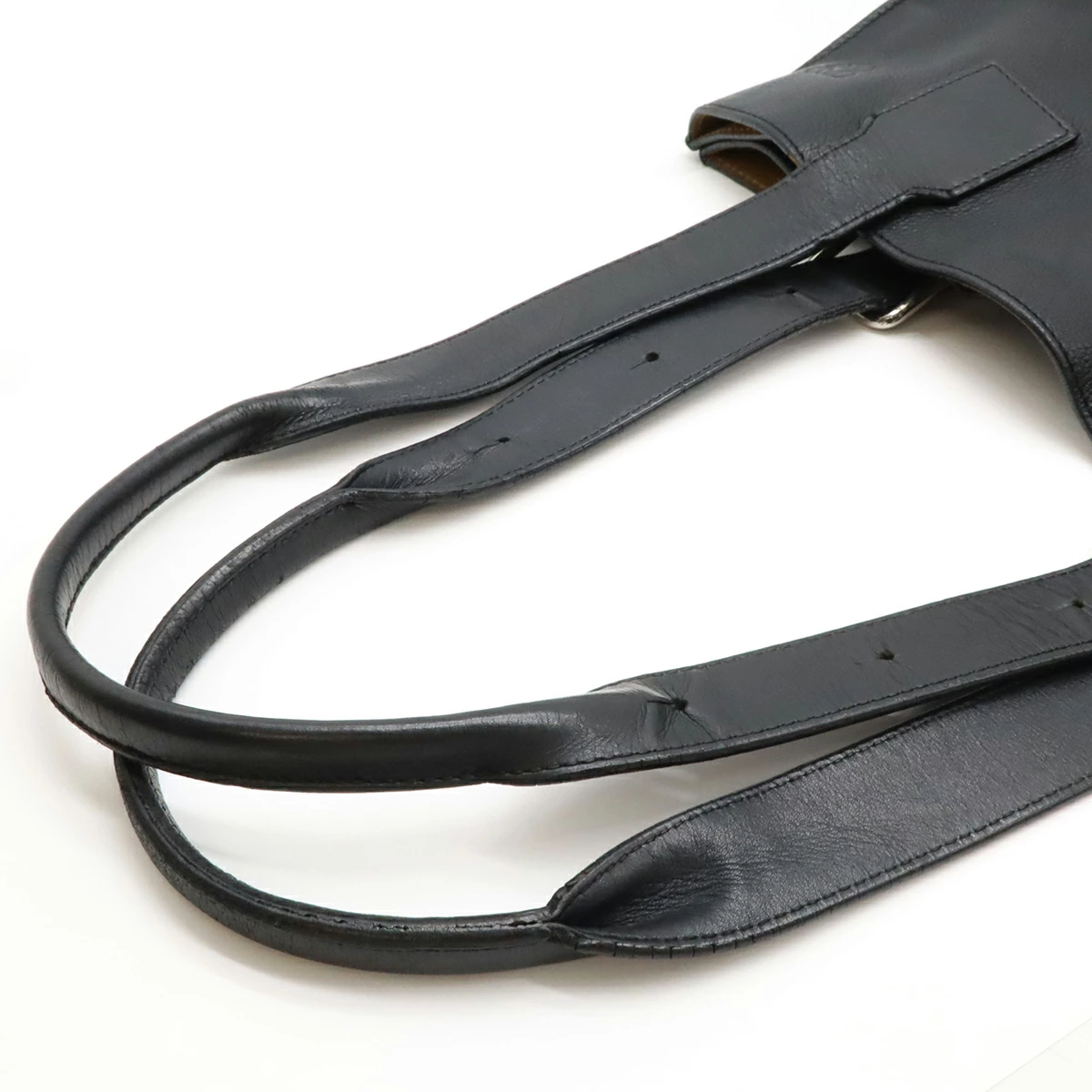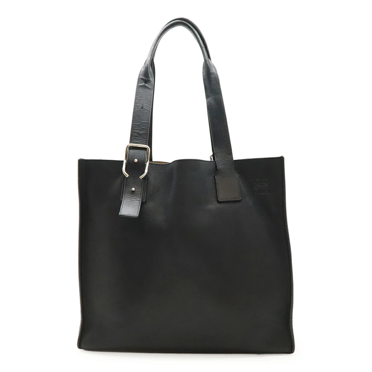 特徴的なアシンメトリートップハンドルとバックルを備え、フロントにはさりげなくアナグラムが施されたお洒落なアイテム。