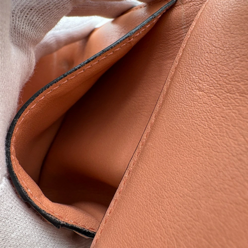| 状態 | 【外・表面】スレ、キズ、剥げ、汚れ、黒ずみ、歪み、変色 【外・コーナー】スレ、キズ、黒ずみ、変色、コバ割れ、コバ剥がれ 【外・形状】型崩れ 【内側】スレ、キズ、剥げ、汚れ、黒ずみ、変色 【ファスナー部分】スレ、キズ、くすみ、黒ずみ 【におい】匂いあり(強くない) 【金具部分】スレ、キズ、くすみ、打痕 箱汚れあり、スナップボタン周り凹み |