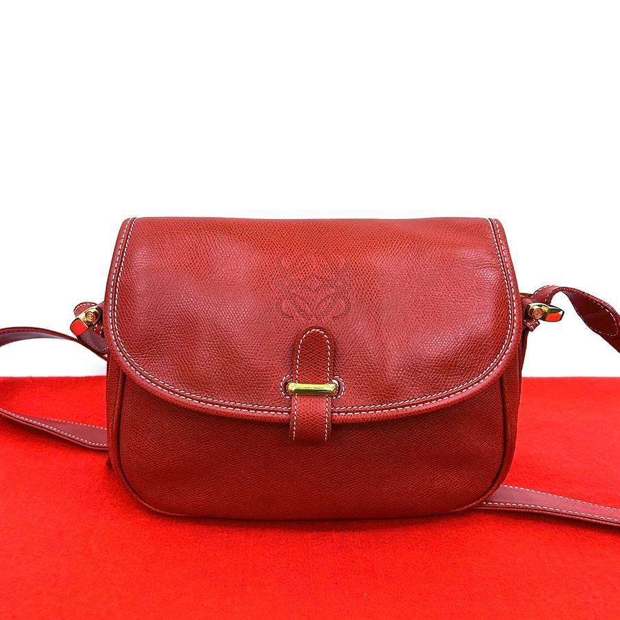 LOEWE Vintage Anagram Embossed Logo Leather Shoulder Bag/Pochette/Sacoche in Red (Product Code: 00786)