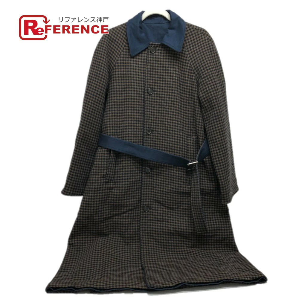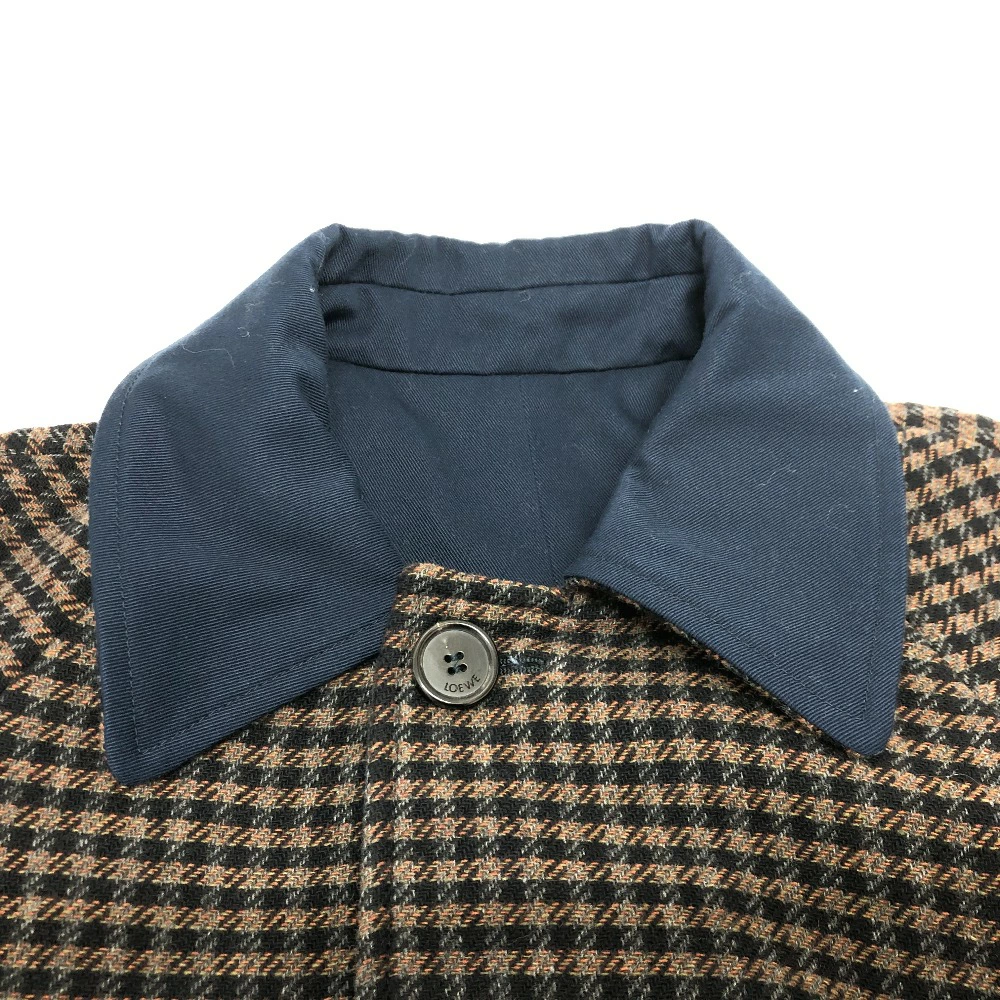 Pre-owned LOEWE H526Y01W37 reversible check pattern coat, long wool coat, men's, brown.