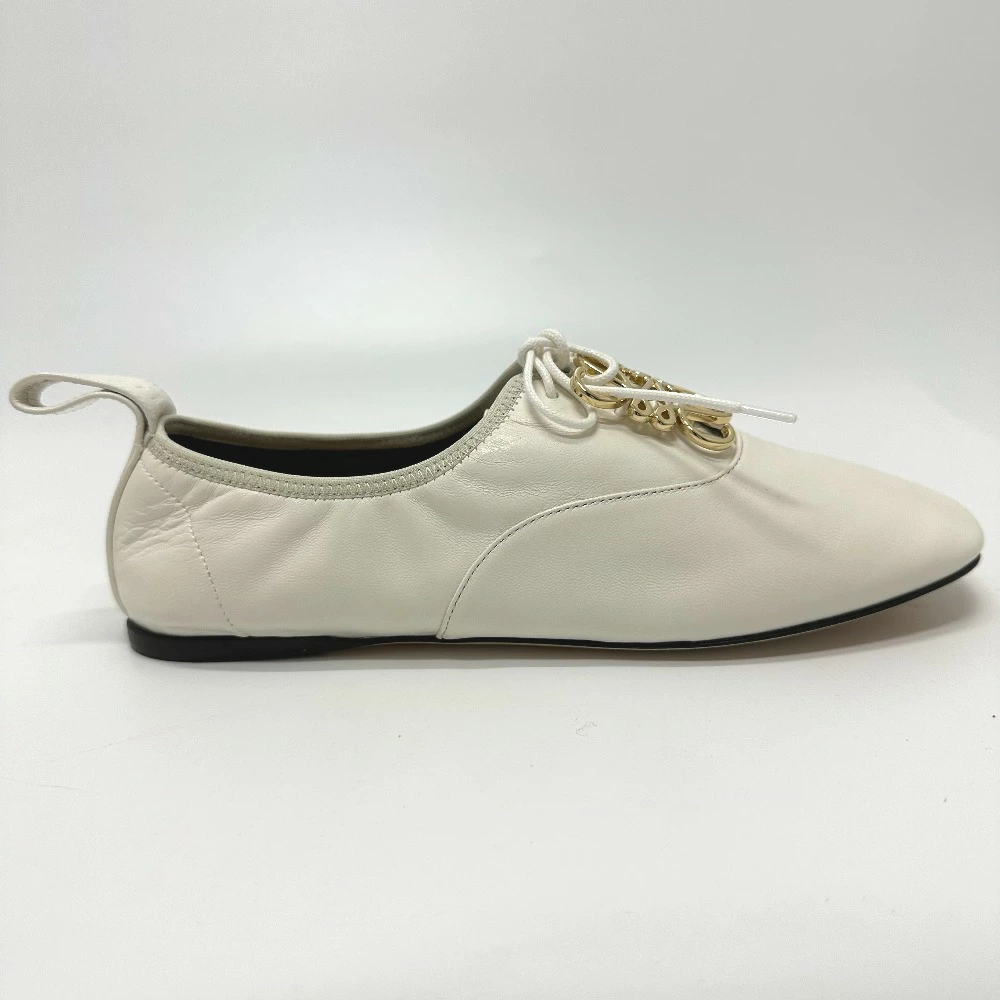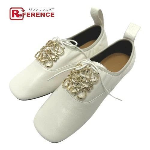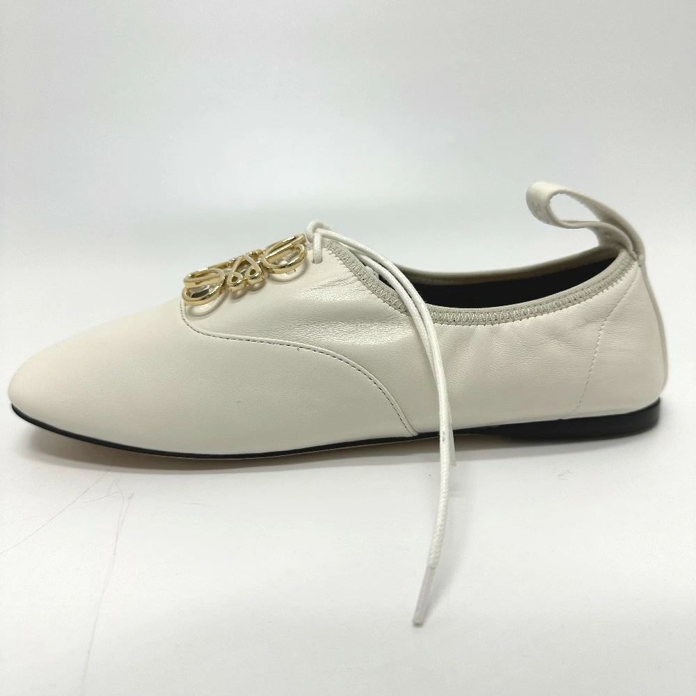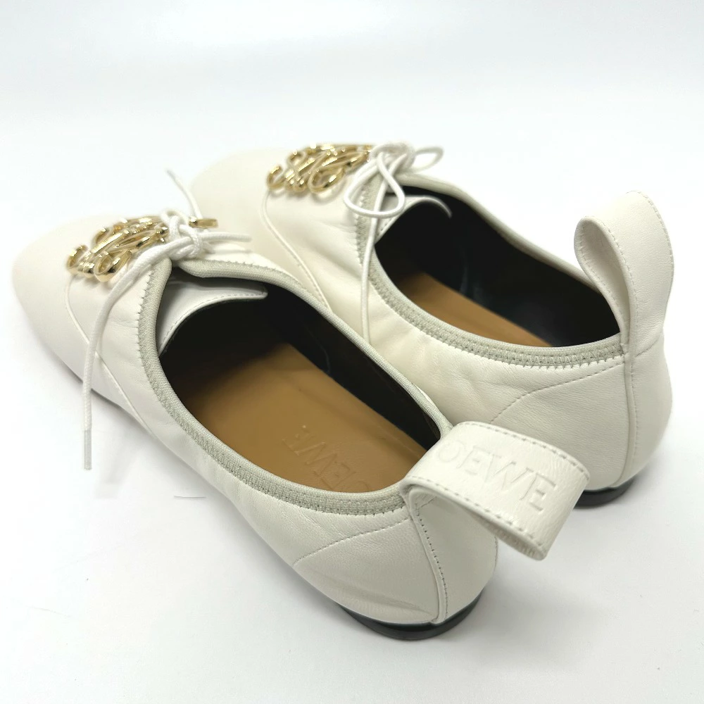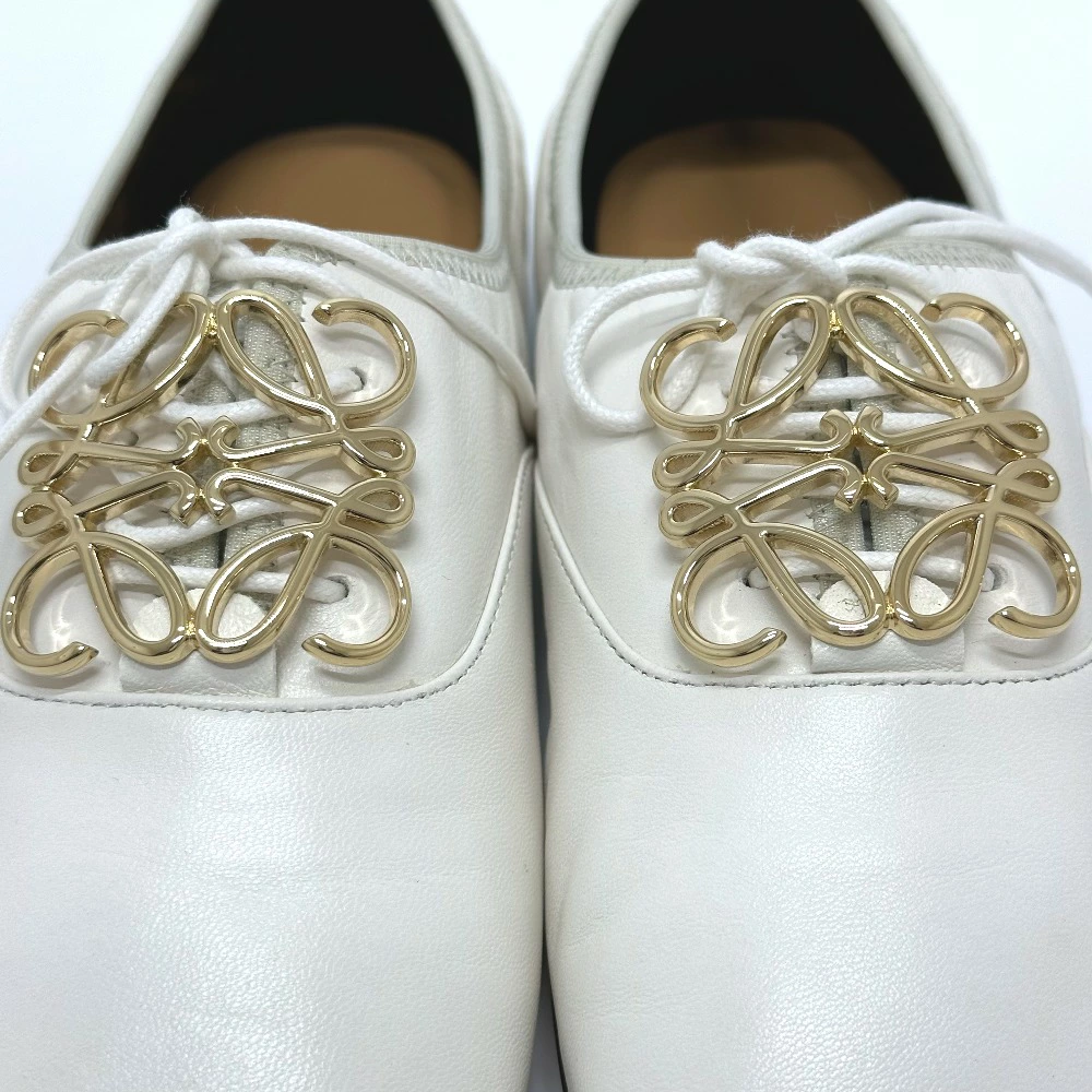| 商品説明 | ロエベのゴールド金具がポイントのホワイトレザーシューズです。フラットソールに上質なレザーで歩きやすくおすすめのアイテムです。 |