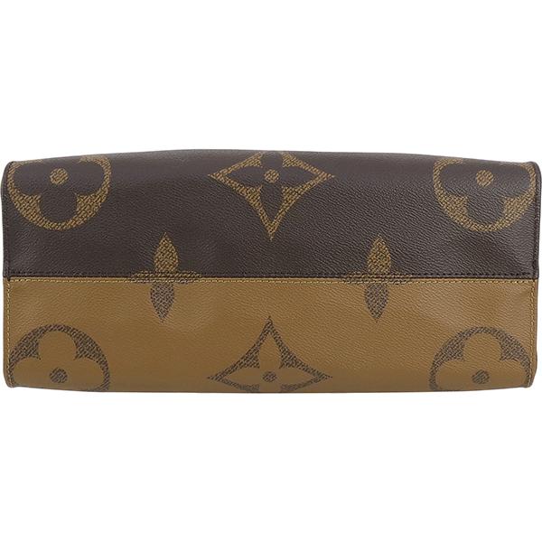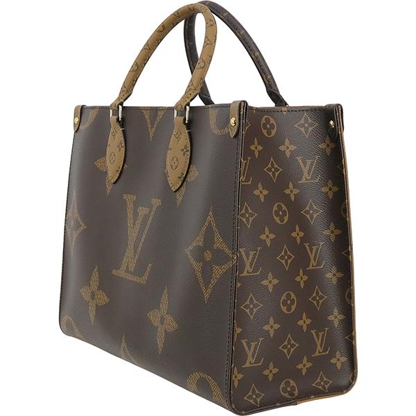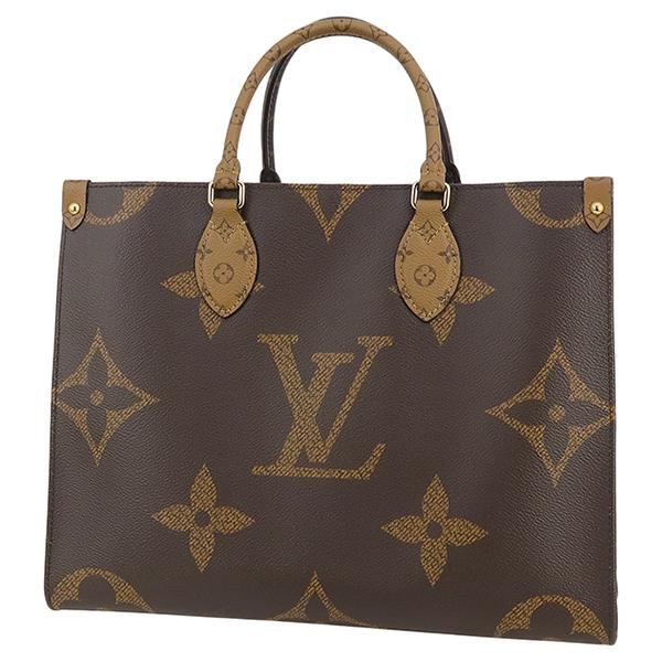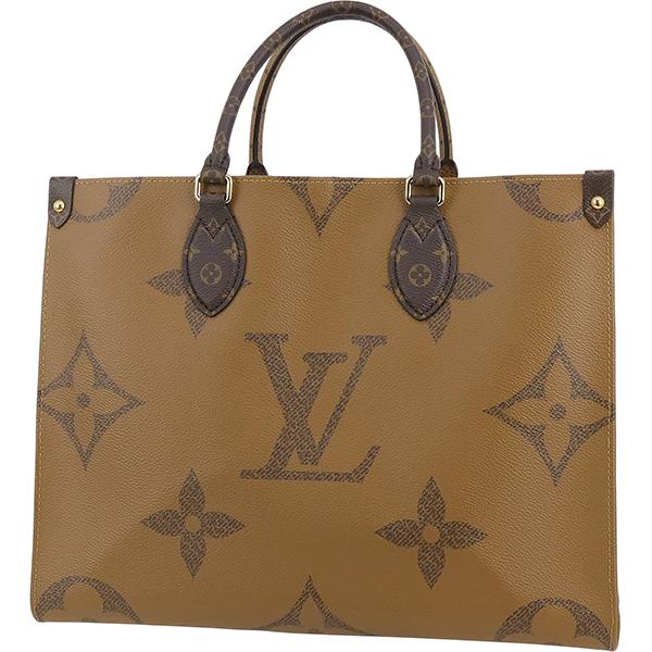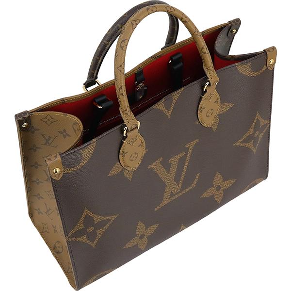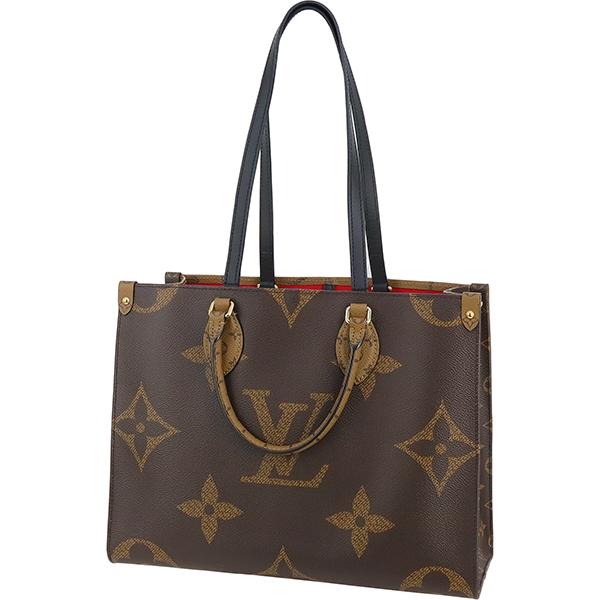 【ブランド】LOUIS VUITTON ルイヴィトン------------------------【商品名】オンザゴー MM------------------------【ライン】モノグラム・ジャイアント リバース------------------------【型 番】M45321------------------------【製造番号】RFID(ICチップ)内蔵製品(製造番号刻印無し)------------------------【製造国】フランス、スペイン、イタリアのいずれか------------------------【カラー】[外側] ブラウン系[内側] レッド[金具] ゴールド[トリミング] ブラック------------------------【素 材】[外側] モノグラムキャンバス[内側] テキスタイル------------------------【サイズ】約:横34cm × 高さ26cm × マチ15cmハンドル長さ:約29cmショルダー長さ:約55cm------------------------【重 量】約750g------------------------【機 能】フック開閉ファスナーポケット×1オープンポケット×2肩掛けショルダーストラップ------------------------【収納可能アイテム】長財布や小物500mlペットボトルA4サイズ書類------------------------【付属品】純正箱 / 保存袋------------------------商品ランク 【N】 (新品※製造・輸送・検品の際にどうしてもついてしまう僅かなスレ・押し跡・ほつれ等がある場合がございます。)