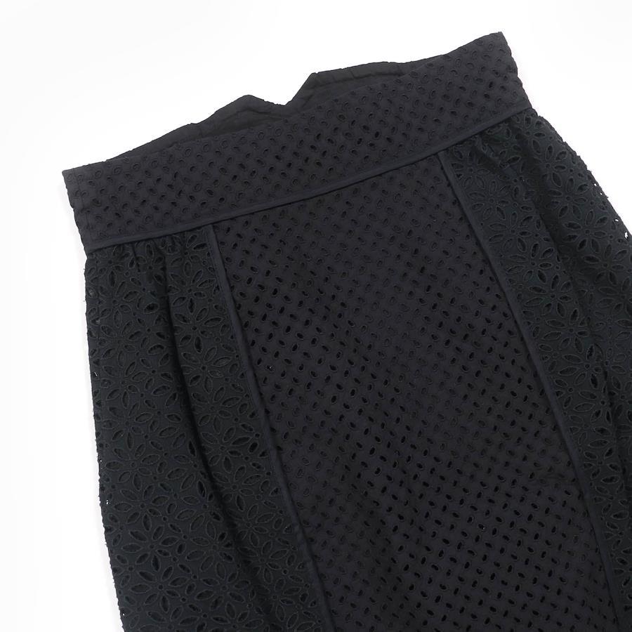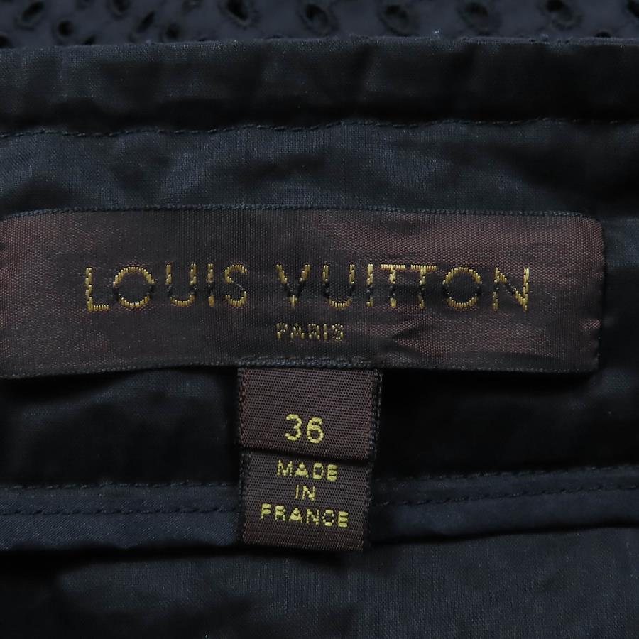 LOUIS VUITTON Skirt with Eyelet Lace Floral Design, LV Gold Buttons, Black Cotton and Silk