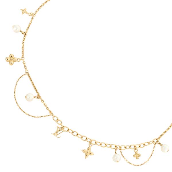 ------------------------【スタッフコメント】ゴールドカラーのチェーンとホワイトパール、モノグラムフラワーやロゴのチャームが連なった、ルイヴィトンの上品なペンダントネックレス【ネックレス ブルーミングパール】。普段のコーディネートをワンランクアップさせる、ギフトやプレゼントにも人気のアイテムでございます。------------------------管理番号:h-AE484 aエ I