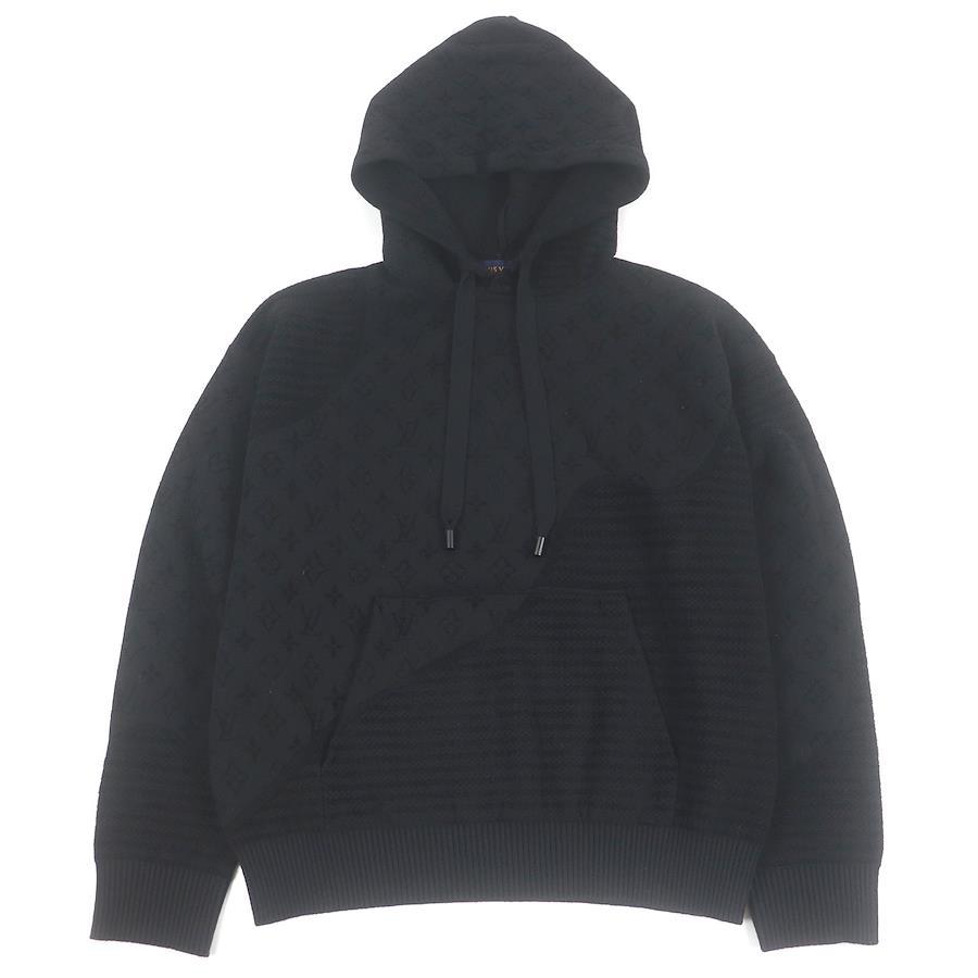 LOUIS VUITTON Graphic Jacquard Monogram Knit Hoodie in Black Wool and Rayon (1AHCMW)
