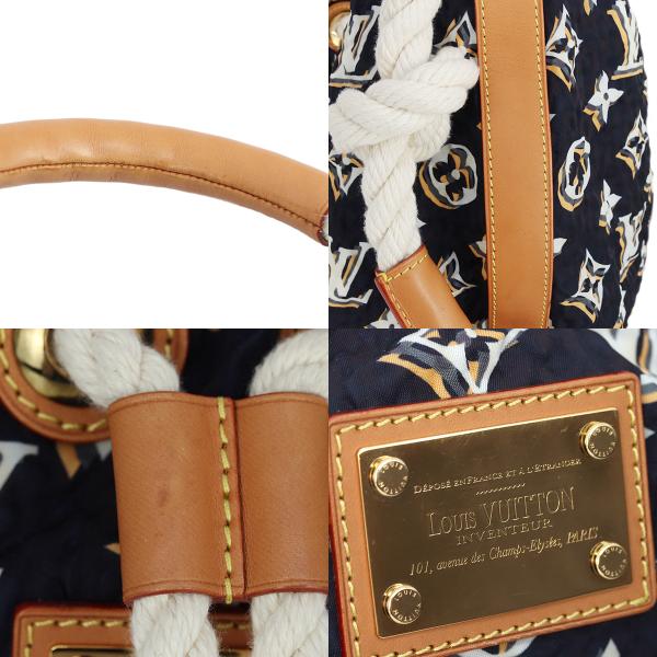 【ブランド】LOUIS VUITTON ルイヴィトン------------------------【商品名】ビュル MM------------------------【ライン】モノグラム------------------------【型 番】M40235------------------------【製造番号】RC4039------------------------【製造国】イタリア------------------------【カラー】・マリン[外側] ネイビーブルー[内側] オフホワイト[金具] ゴールド[トリミング] ベージュ系[プリント] ホワイト × ベージュ × グレー------------------------【素 材】[外側] ナイロンキャンバス[内側] テキスタイル[トリミング] カーフレザー------------------------【サイズ】約:横39cm × 高さ(中央)29cm × マチ13cmハンドル長さ:約30cm------------------------【重 量】約840g------------------------【機 能】ホック開閉ファスナーポケット×1パッチポケット×1------------------------【収納可能アイテム】長財布やポーチ500mlペットボトルA5サイズ書類------------------------商品ランク 【A】 (中古美品 多少の使用感・ダメージ等はあるが、比較的奇麗な商品)