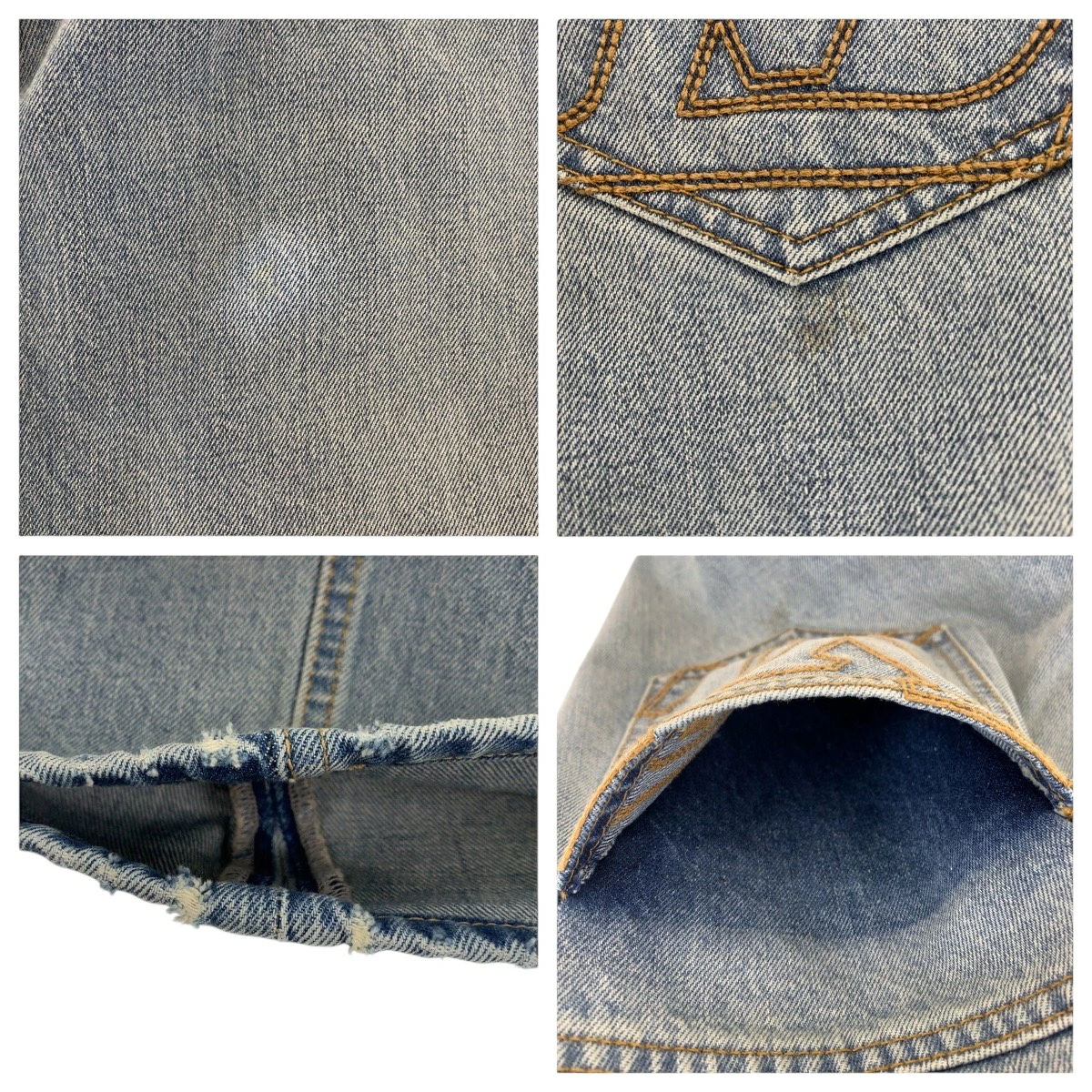 | サイズ | 表記サイズ:30 総丈:約103cm ウエスト:約平置き41cm 股上:約33cm 股下:約70cm ワタリ幅:約30cm 裾幅:約24cm |