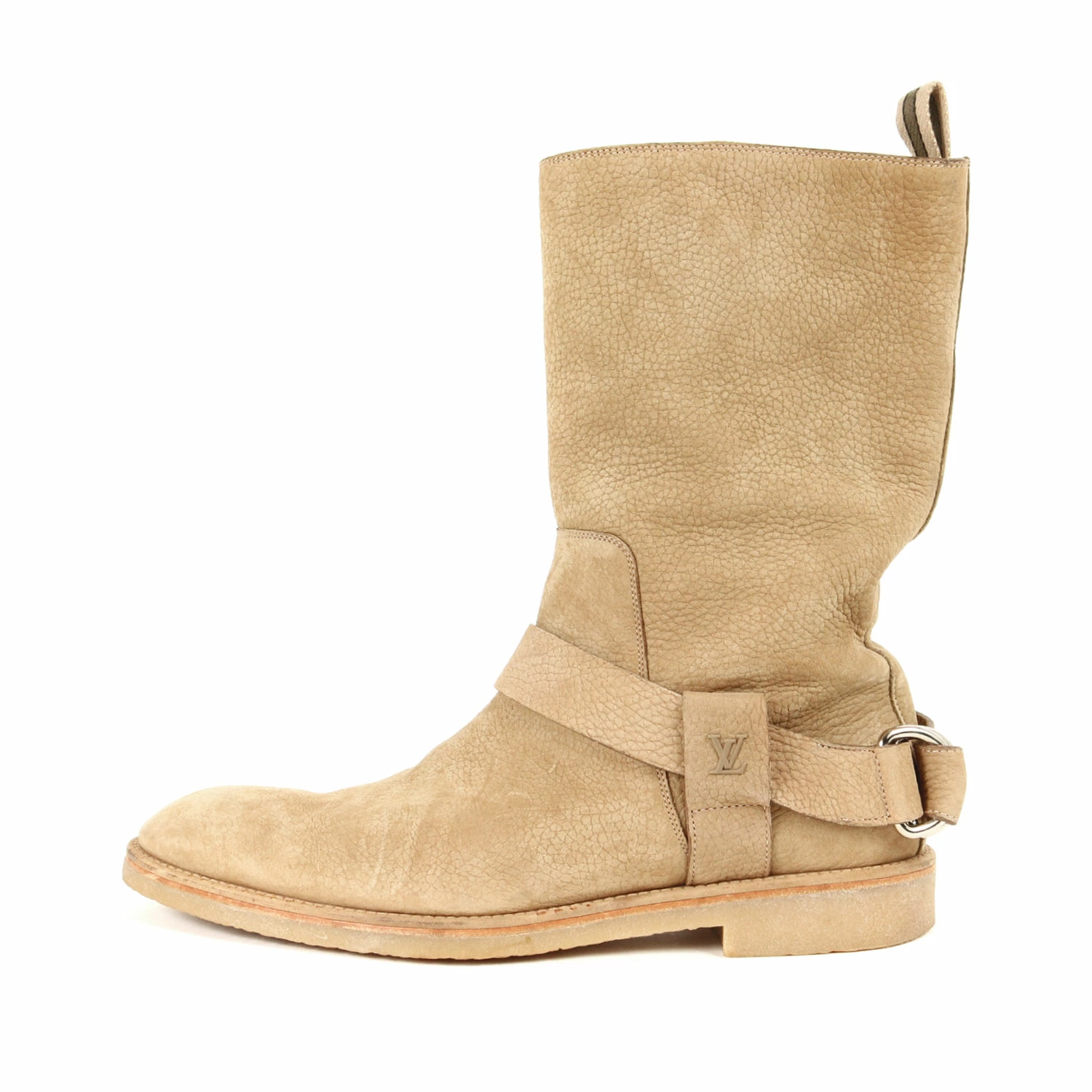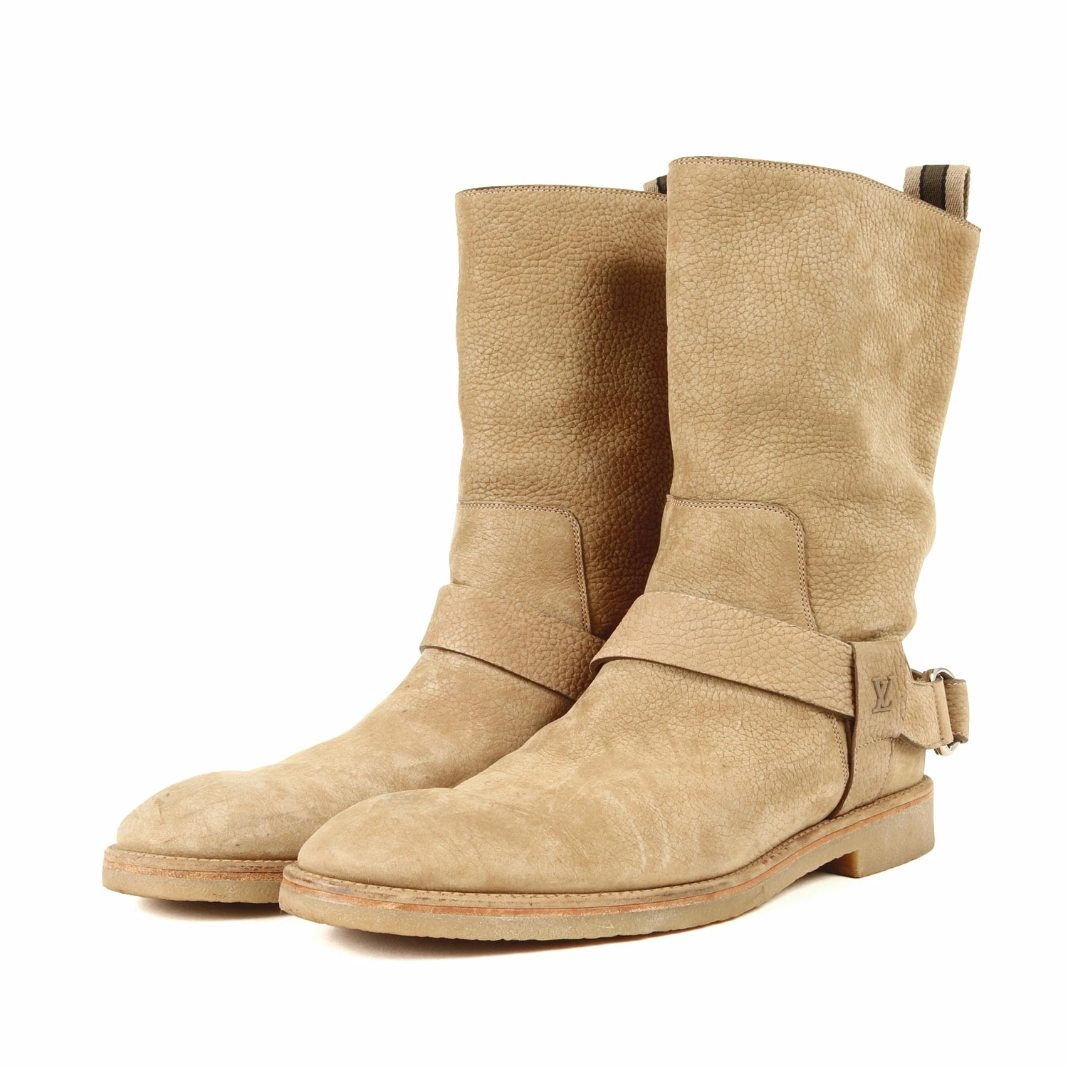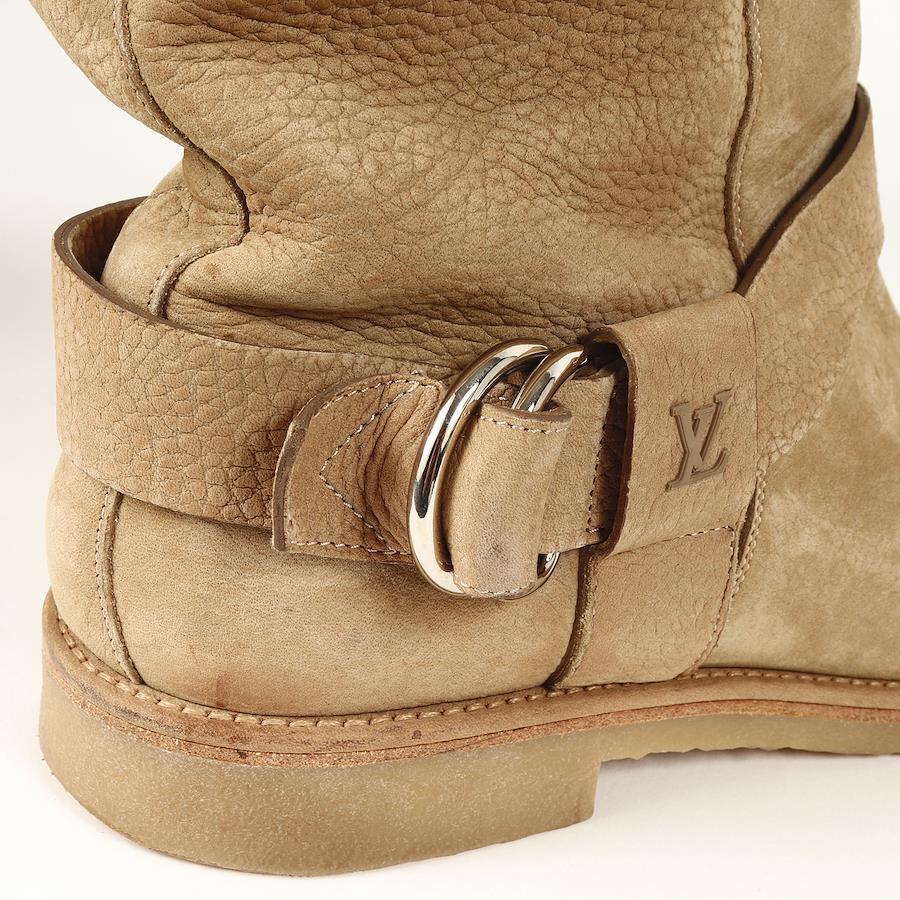 - 柔らかなスエードレザーを使用したエンジニアブーツになります。側面に同系色で配されたLVロゴとDカン使いがポイントのアイテムです。