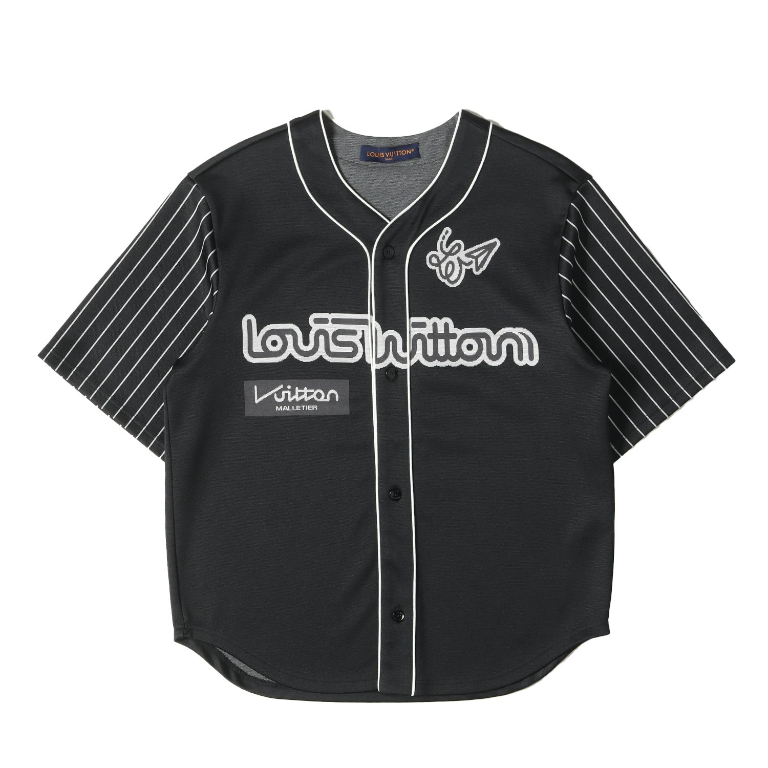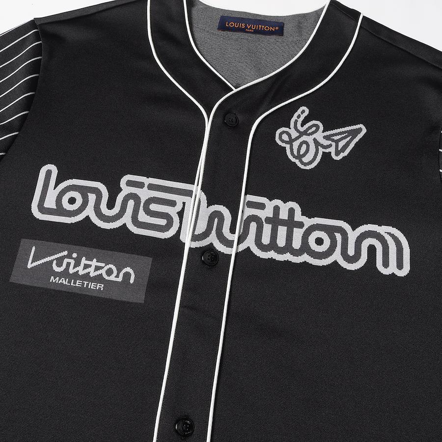 LOUIS VUITTON Shirt, Size Small, 23SS, Logo and Numbering, Stretch Jersey Baseball Shirt, Black, Made in Italy, Casual Top, Short Sleeve, Men's, Pre-owned, Excellent Condition, K4618