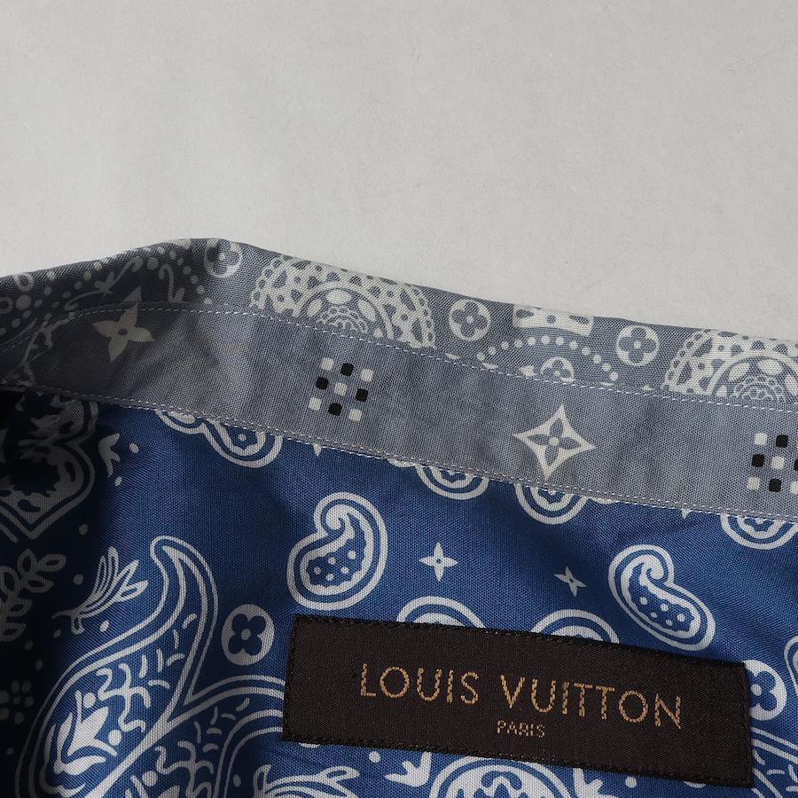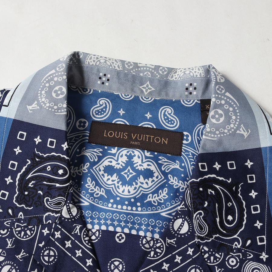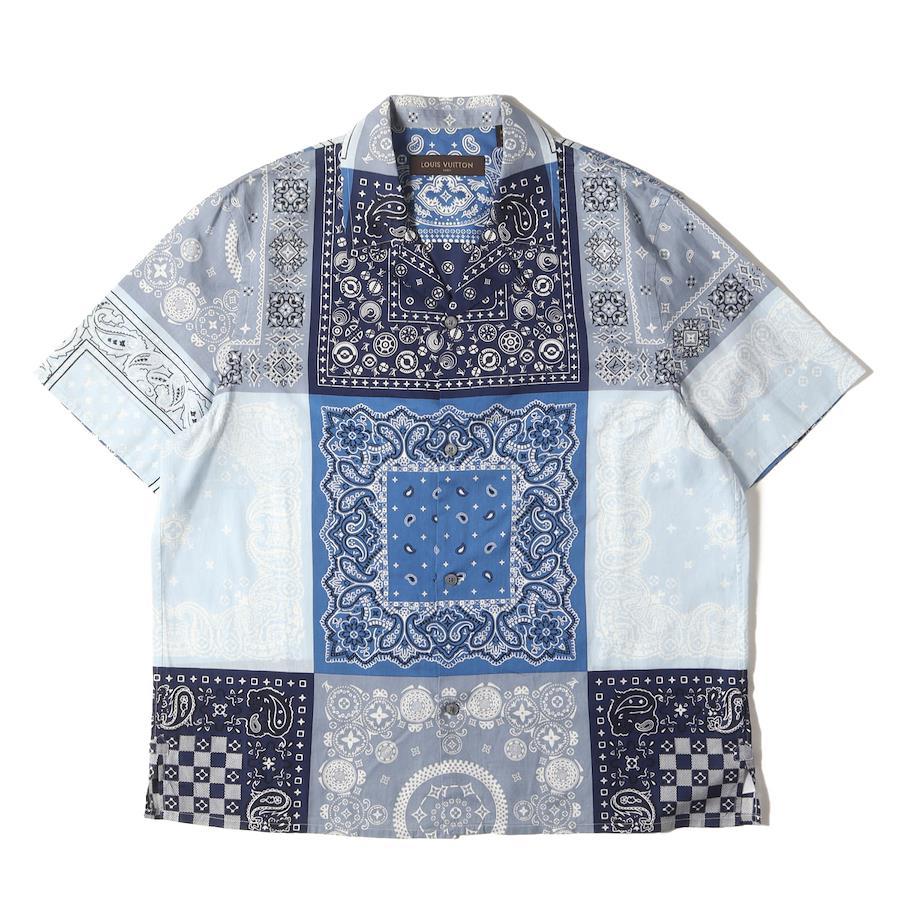 商品説明2014年春夏コレクションの名作モデルです。色味の異なるバンダナパターンを組み合わせたオープンカラー半袖シャツです。LVロゴも散りばめられています。