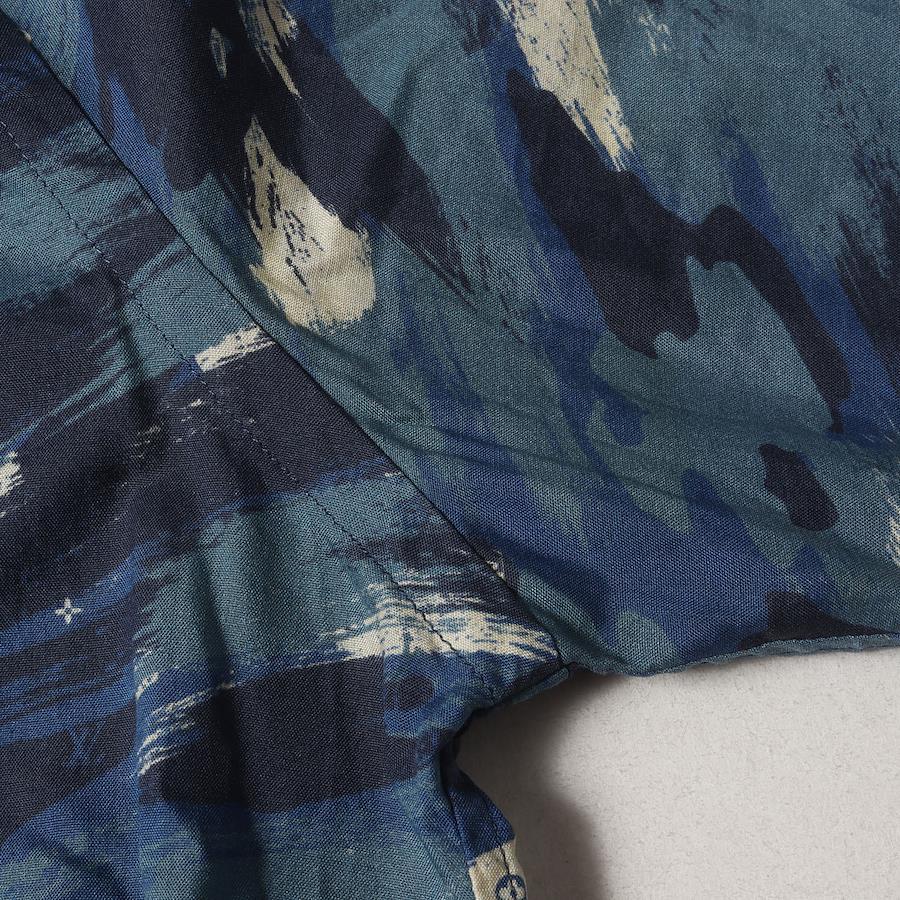 - 薄手のコットン生地を使用し、オープンカラーで仕上げた半袖タイプのアロハシャツです。全体にオリジナルの迷彩パターンをデザインしています。さり気なくモノグラム柄を取り入れたのがポイントです。