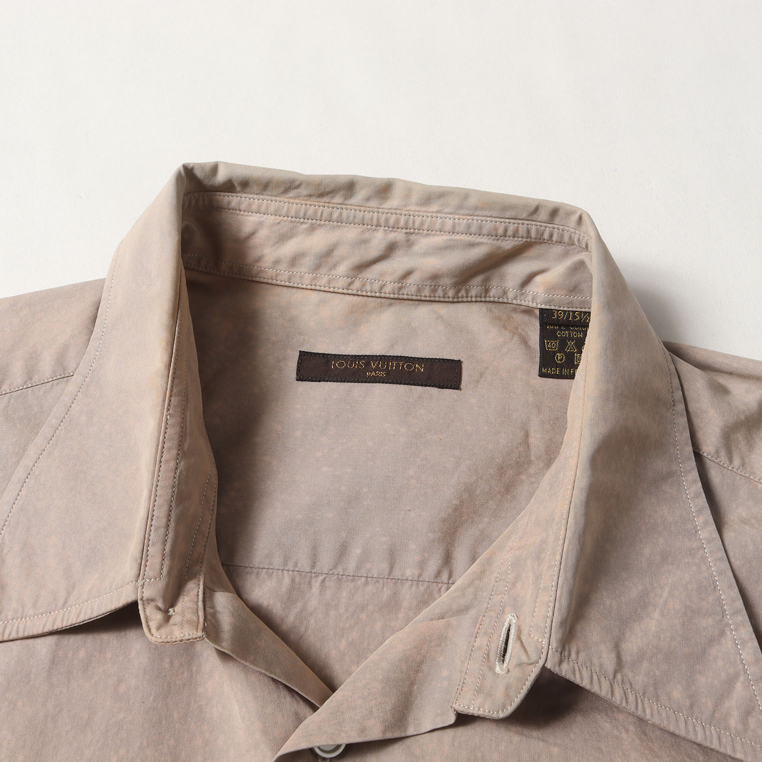 LOUIS VUITTON Light Brown Shirt, Size 39 (15 1/2) | Bleached Multi-Pocket Cotton Button-Down Shirt | Made in France | Men's Casual Long Sleeve Shirt | Pre-owned | K4614