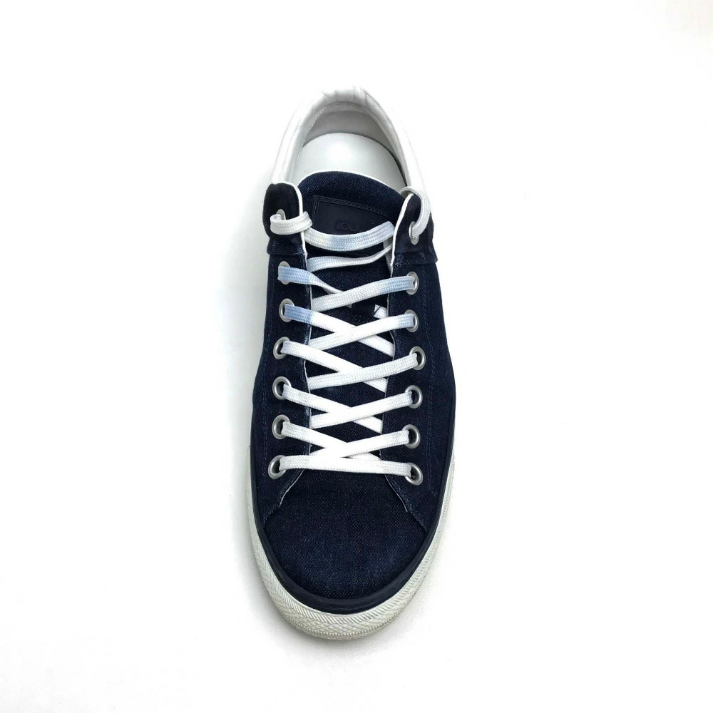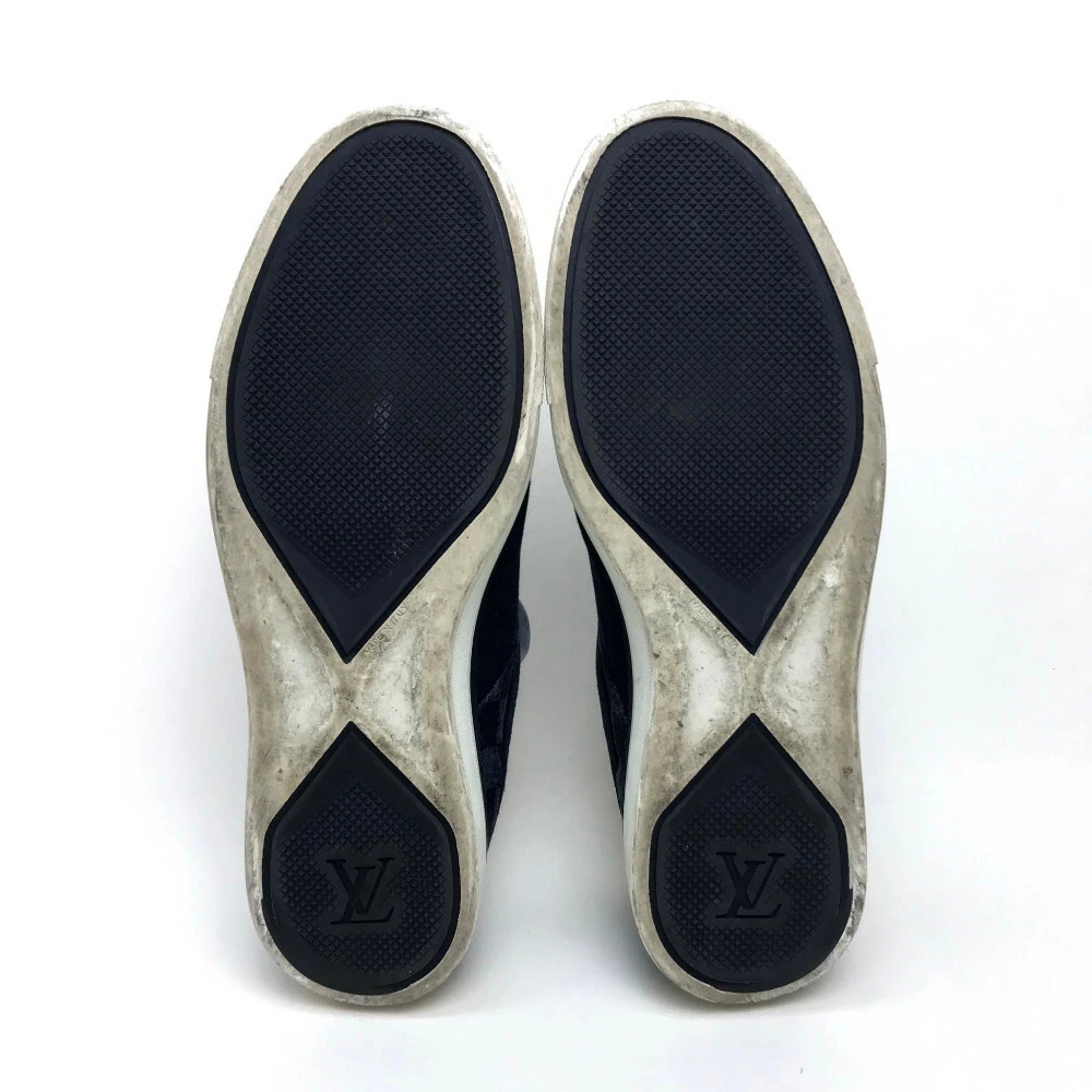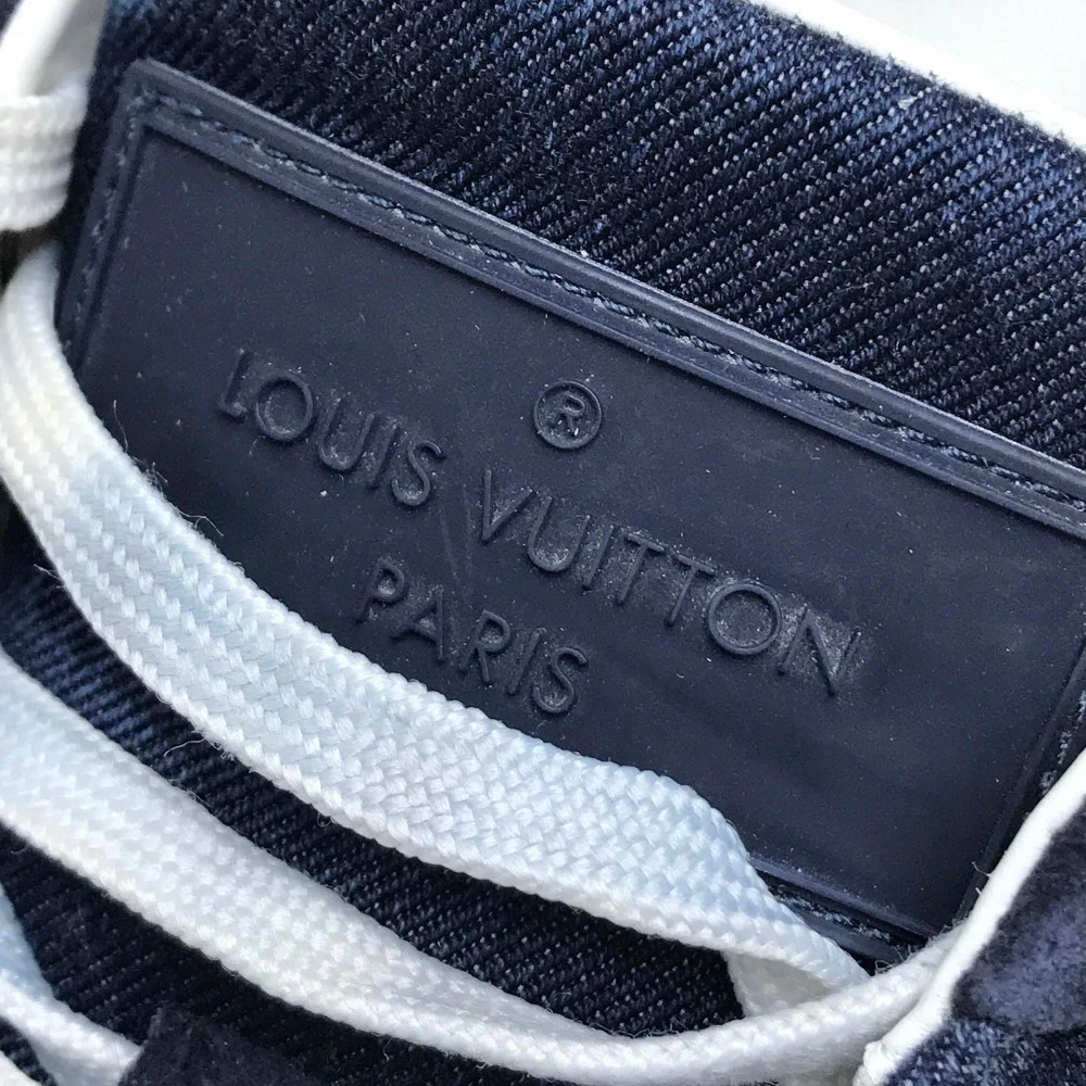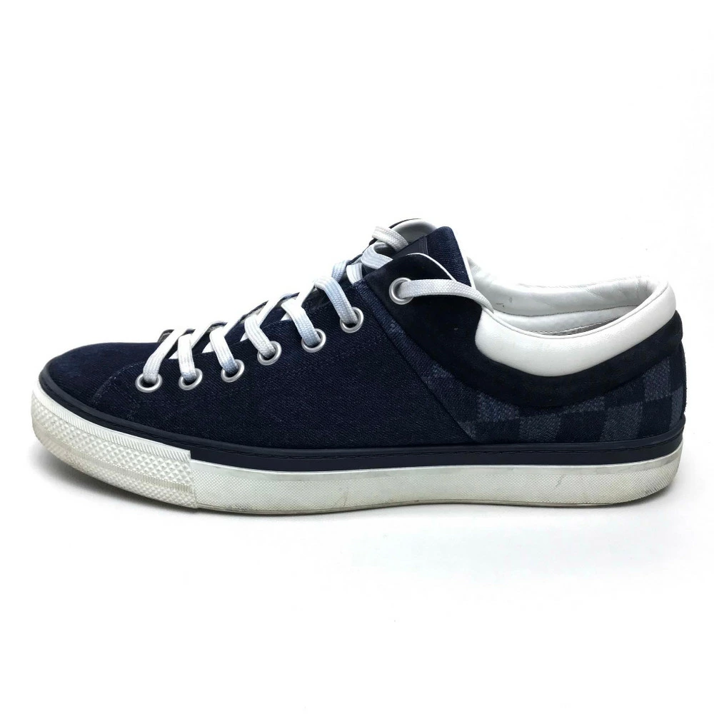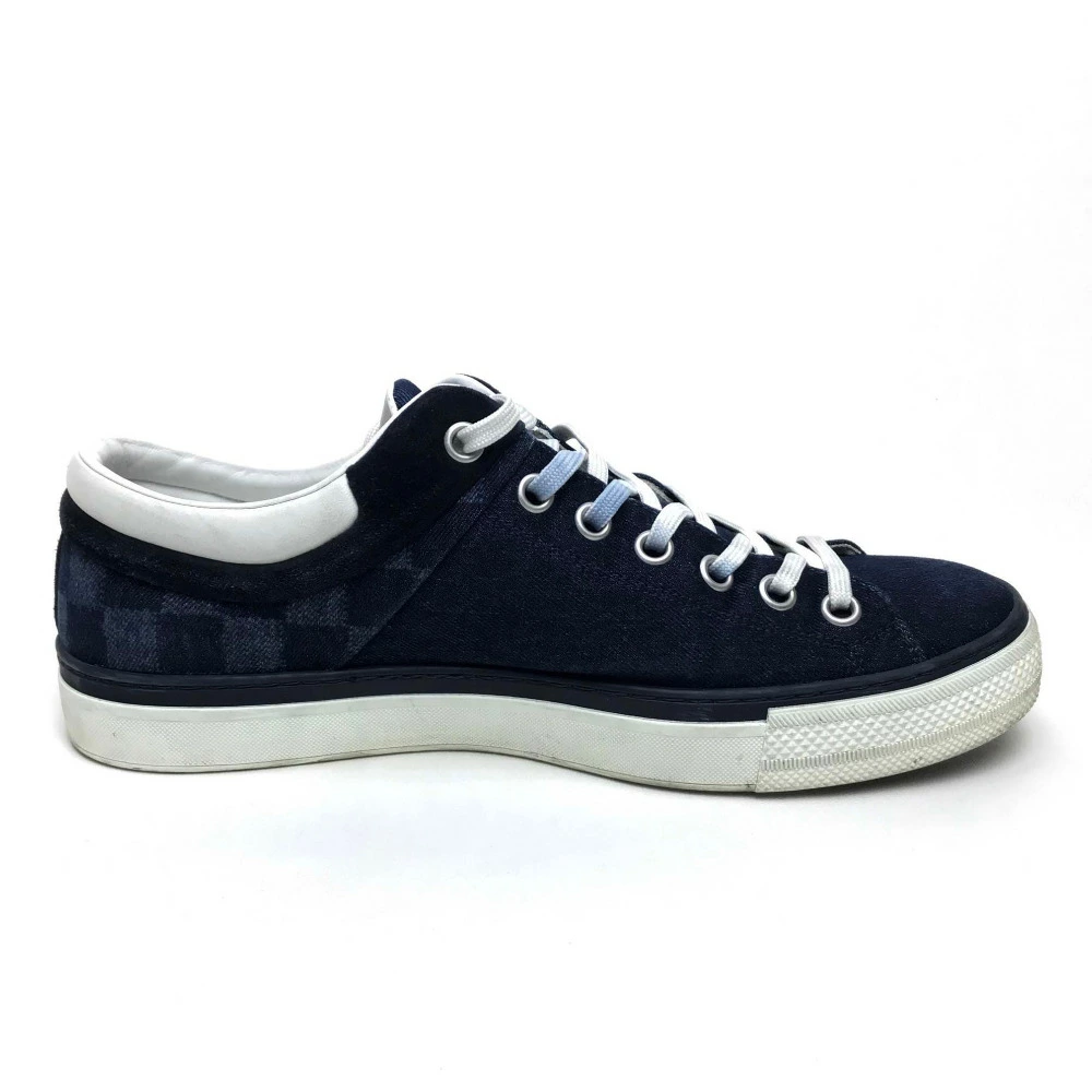 Pre-owned Louis Vuitton Damier low-top denim sneakers, model 2856, men's, indigo blue.