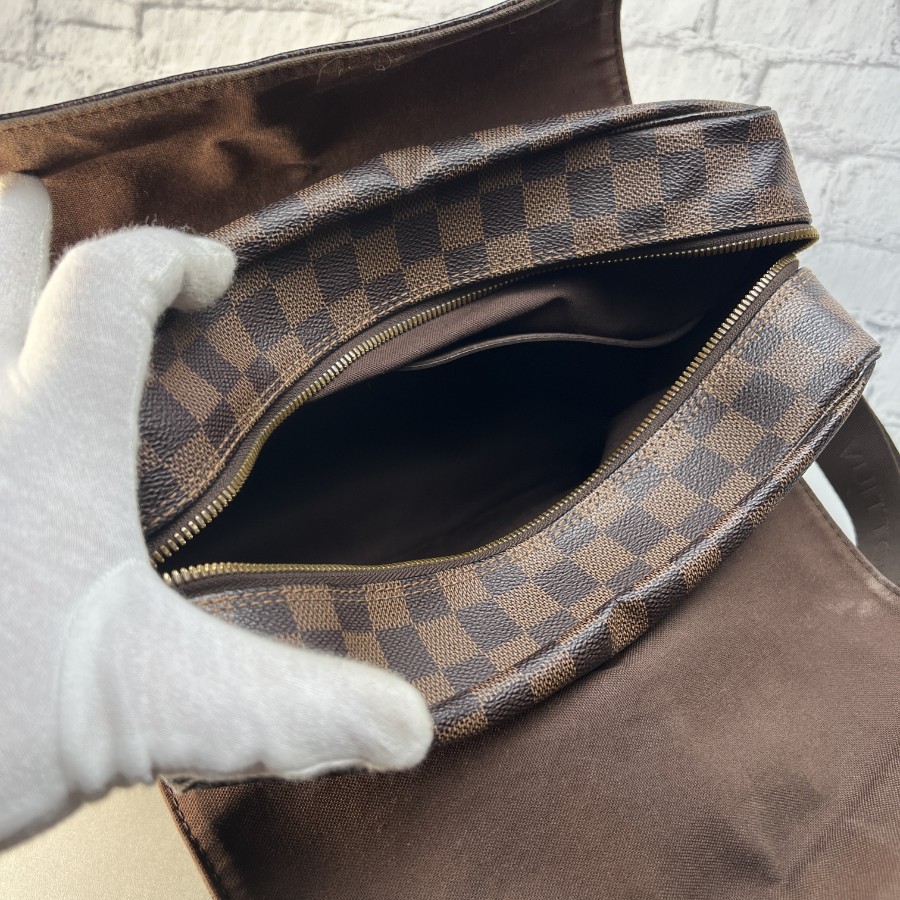 【アイテム】美品 LOUIS VUITTON ルイヴィトン ダミエ ナヴィグリオN45255 レザー ショルダーバッグ ブラウン A-12272