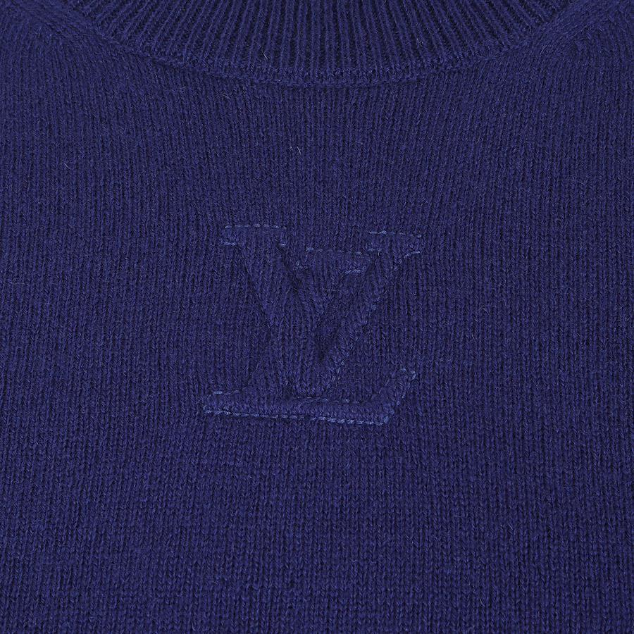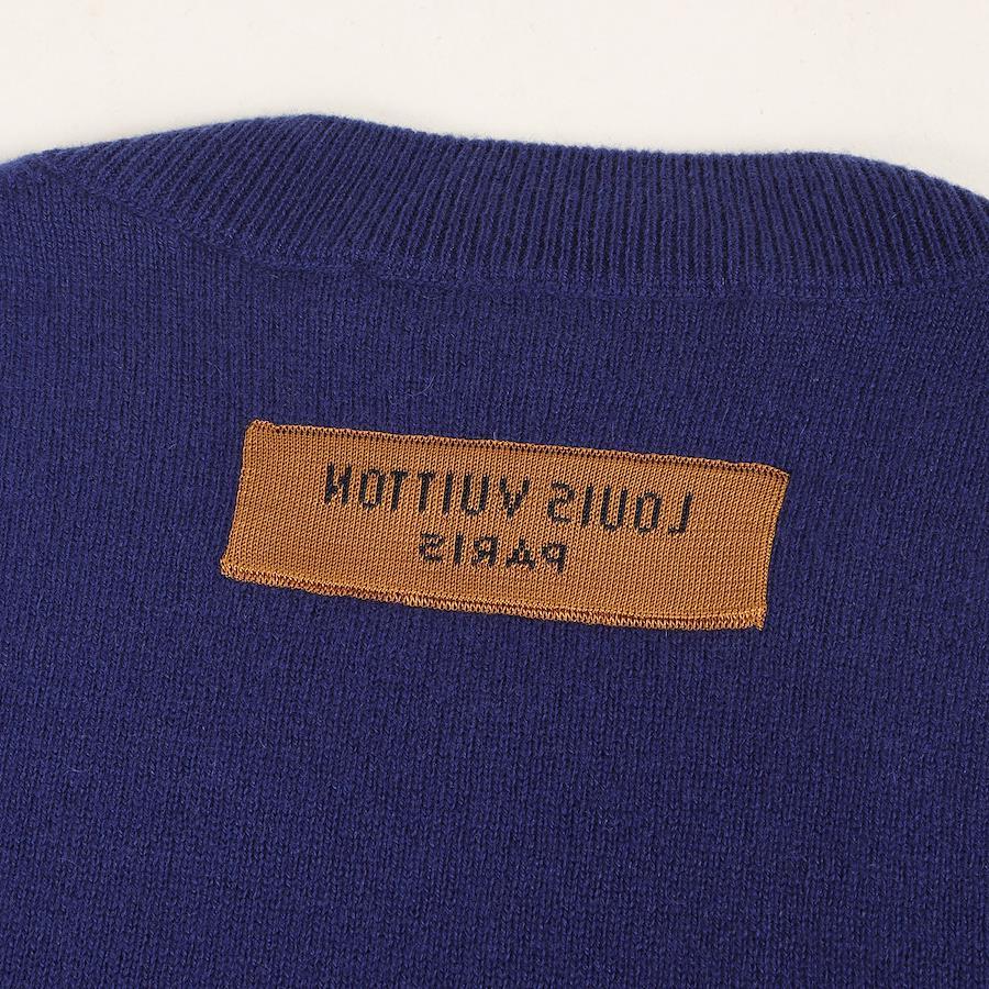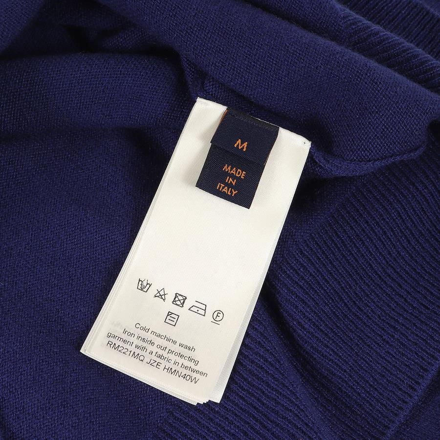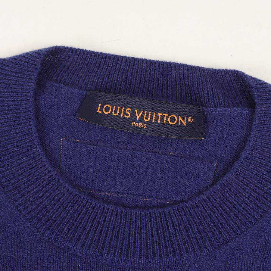- 肌触りの良い上質で高級感のあるカシミヤシルクナイロン混紡ニット地を使用し、ネックライン下にトーナル刺繍、エンボスであしらわれたLVイニシャルが配され、インターシャで背面に表現されたラベルに施され、インサイドアウト風で仕上げられたプルオーバーニットです。