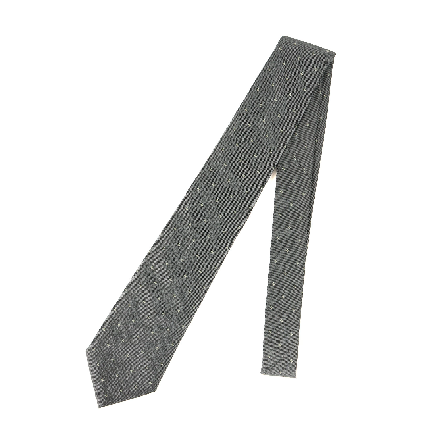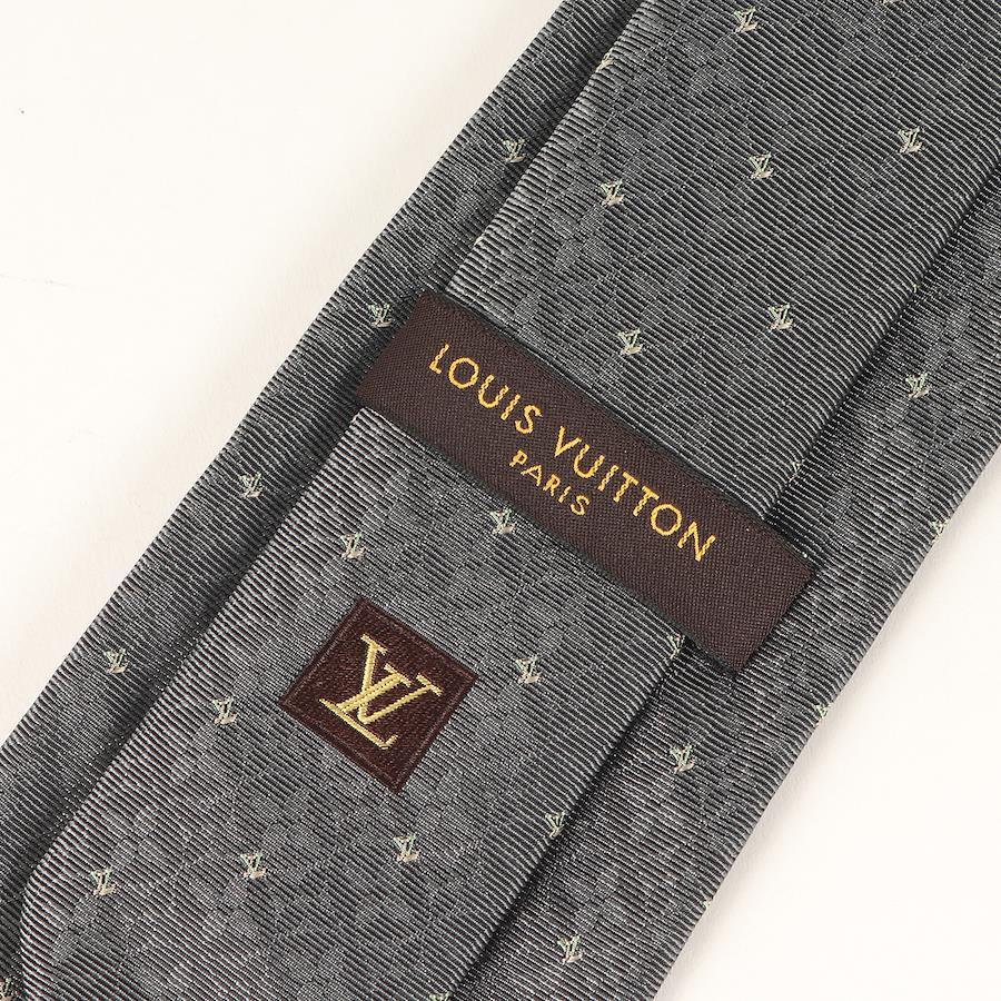 LOUIS VUITTON Tie | Logo Monogram Silk Tie | Made in Italy Cravate | Gray | Men's Designer Fashion Item | Pre-owned | Excellent Condition | K4618