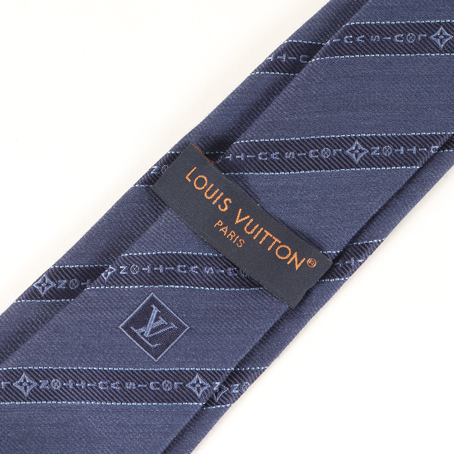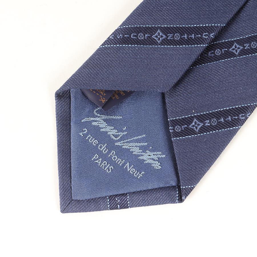LOUIS VUITTON Tie | Recent Model | Tangled Regimental Silk Tie | Made in Italy | Cravate M79088 | Navy | Men's Designer Fashion Item | Pre-owned | Like New | K4618