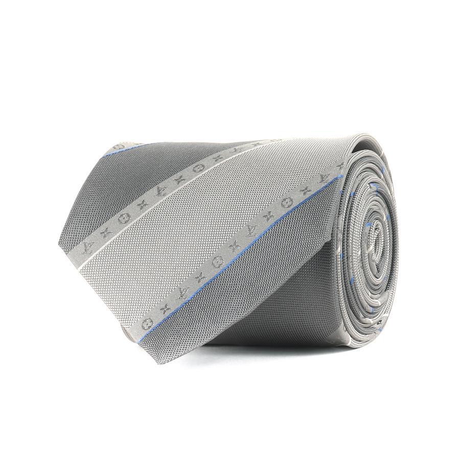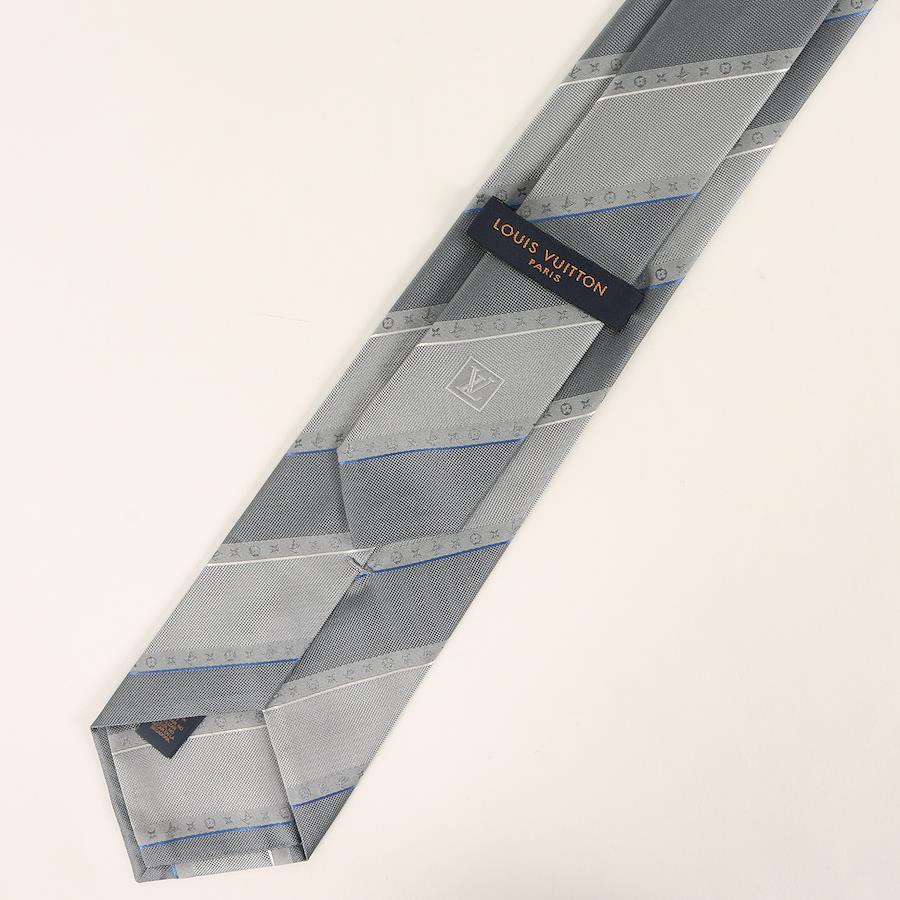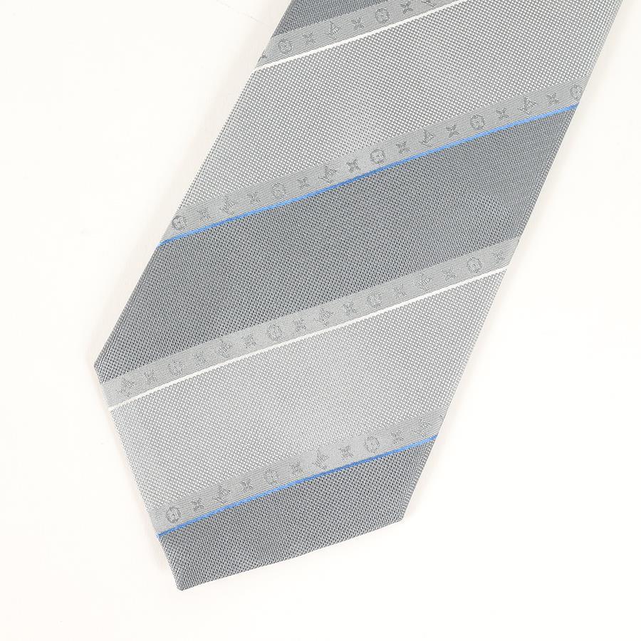 LOUIS VUITTON Tie | Recent Model Regimental Monogram Silk Tie | Italian-Made Cravate M77835 | Silver | Brand Name Fashion Item [Men's] [Pre-owned] [K4615]
