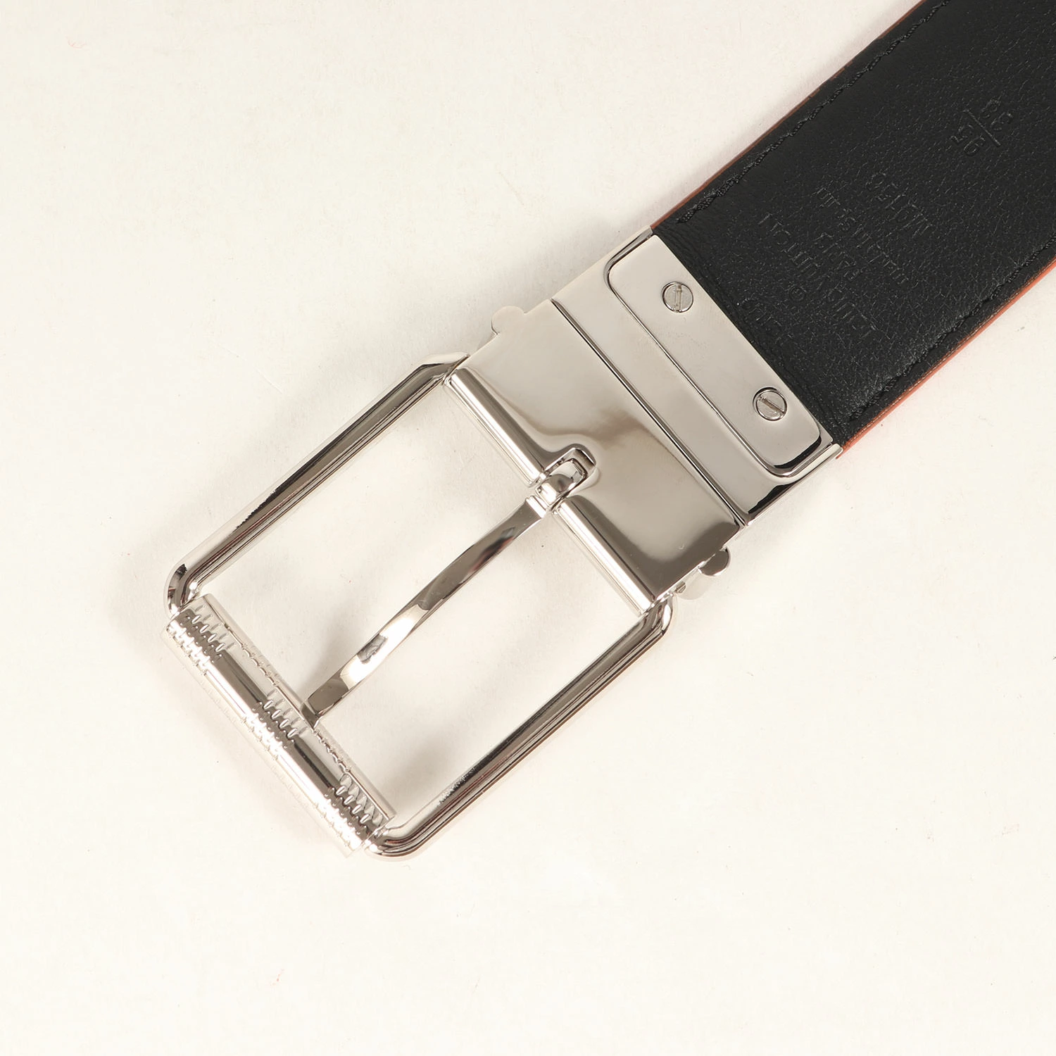 | 商品説明 | ダミエコバルトとカーフレーザのコンビで仕上げたリバーシブルベルトです。オレンジカラーのブランドロゴがデザインされた高級感のあるデザインになります。 |
